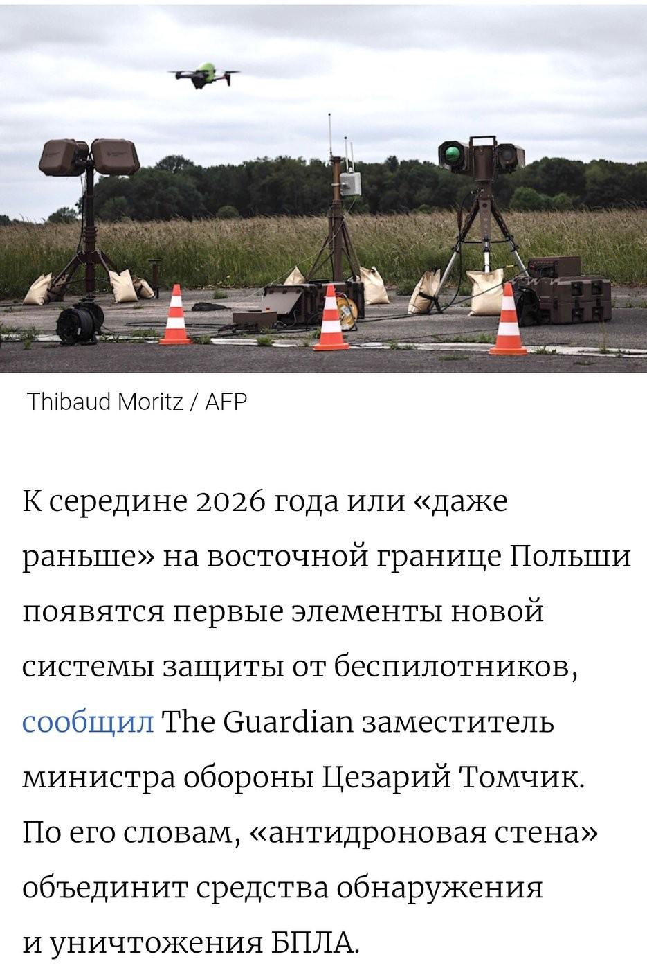 波兰半年内将在俄波边境部署反无人机屏障 波兰国防部副部长切萨雷·托姆奇克向《卫报》透露,2026年年中或更早,波兰东部边境将启用新型反无人机防护系统首批设施🛡️,这套“反无人机屏障(антидроновая стена)”将整合无人机(БПЛА)探测与毁伤装备。他指出,这套专为抵御俄方袭击打造的系统整体需24个月完工,不仅涵盖导弹系统、火炮、机枪及电子战(РЭБ)装备,还包含数小时内即可部署的地面边境封锁设备,且会整合进十年前建成的防御工事,纳入多层防御体系之中。 该项目造价预估20亿欧元,资金主要来自欧洲安全行动计划(SAFE)国防贷款项目下的欧洲基金💰,波兰国家预算也将承担部分开支。托姆奇克强调,部分武器(如多管机枪)因可能对平民构成威胁,仅会在战时启用。波兰政府今年11月首度官宣将打造反无人机屏障,起因是9月有20架俄罗斯无人机(БПЛА)侵入波兰境内✈️。