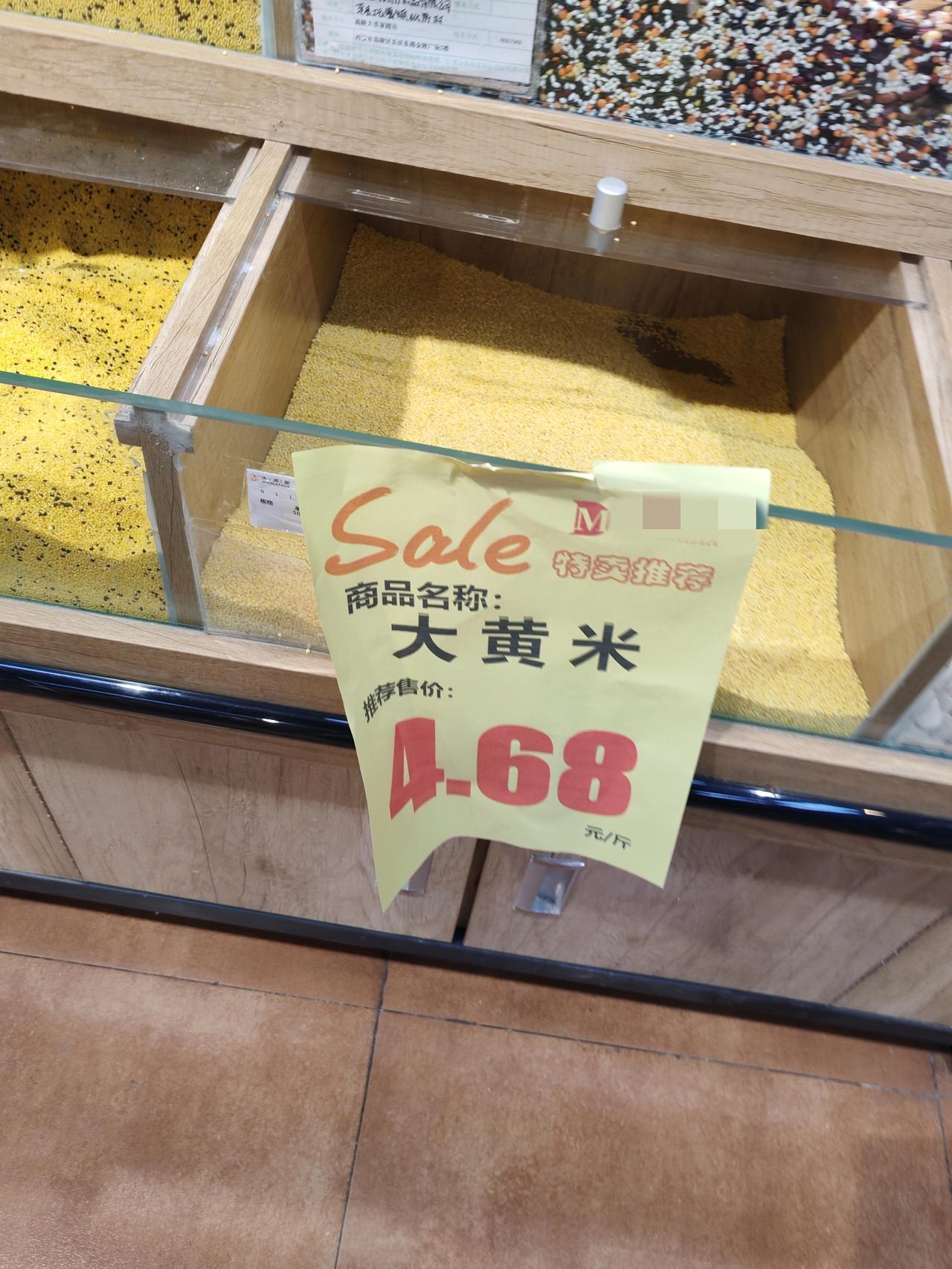 有些迷糊了 12月29日,坐标西安。刚刚晚饭后我来超市溜了一圈,看到大黄米的时候,一头雾水。 粮油区这种黄澄澄的粮食,外框上贴了一个黄色的价签,大黄米4.68/斤,见图2,咦,这不就是小米吗,为啥叫大黄米? 我凑近又仔细瞧了瞧,确实很像小米啊,但看着又比平常买的小米颗粒要大一点,用度娘搜了搜,原来这大黄米和小米还真不是一个品种,属同科的两种粮食,类似于白菜或娃娃菜。 今天长见识了,十几年了,我一直认为大黄米就是小米,叫法不同而已,今天才知道,不是的,就像我们总把相似误认为相同,桐花万里丹山路,雏凤清于老凤声,学到新知识,今天是有收获的一天,开心。