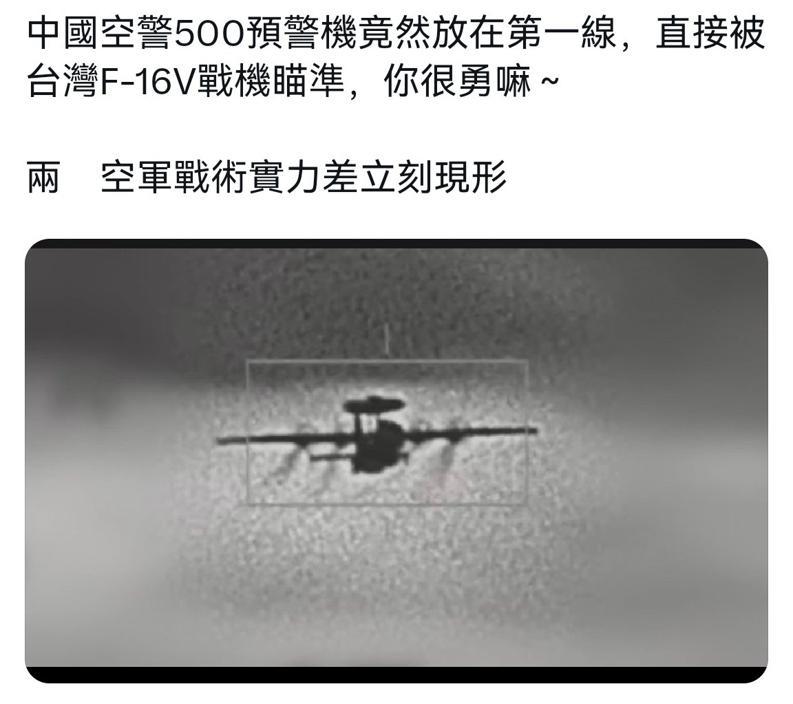 台伪叫嚣:F-16V战机已锁定空警-500预警机,军迷:明显又是P图!笑不活了,台伪军又来拿P图忽悠人了。台伪空军发帖并配图称,解放军的空警-500竟然被放在第一线,已经被台伪的F-16V战斗机吊舱扫描锁定了。但后续该配图立马被大陆军迷发现,就是拿解放军航展图图P出来的(如图2),因为角度和其他特征都一模一样。值得一提的是,12月中旬解放军“福建舰”穿过台湾海峡北上时,台伪方面宣称用F-16V战机吊舱拍摄的“福建舰”也是P图,因为当时的“福建舰”早已经服役刷号了,但台伪放出的模糊图中完全看不到舷号……烽火问鼎计划解放军无人机俯瞰台北101大厦热点现场
