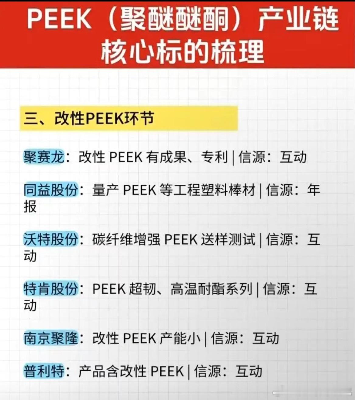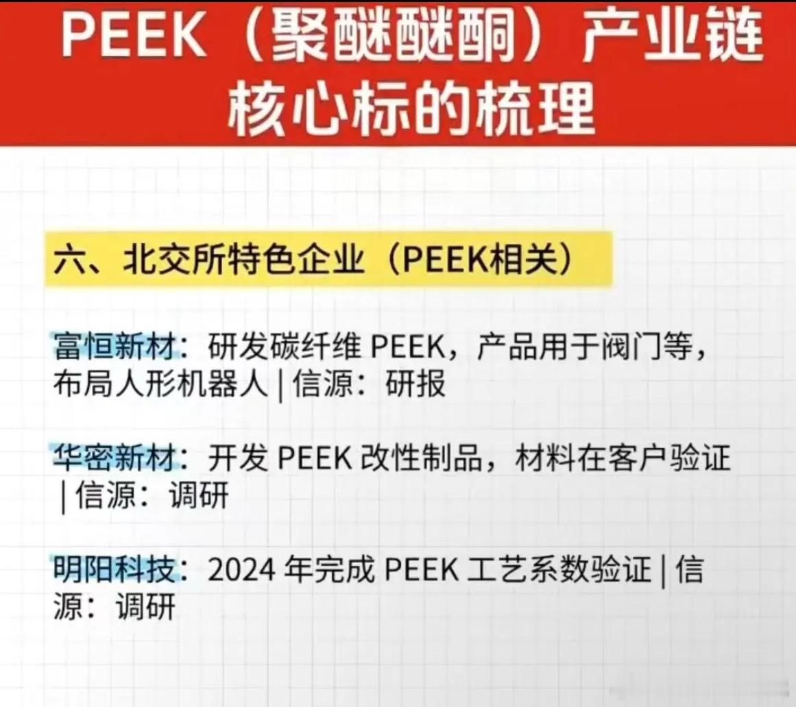 PEEK(聚醚醚酮):高性能特种工程塑料,耐高温、适配人形机器人关节、发动机轴承等核心场景,风口已来!双重红利引爆行情:人形机器人需求爆发+国产替代提速,中泰证券测算每100万台人形机器人需3800吨PEEK;上游氟酮扩产持续降本,行业潜力拉满。核心龙头认准中欣氟材:PEEK关键中间体DFBP年产能5000吨国内第一,筑牢国产替代原料壁垒,是赛道核心标的!理财有风险,入市需谨慎。
