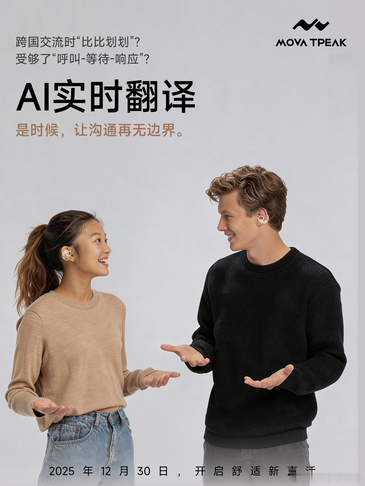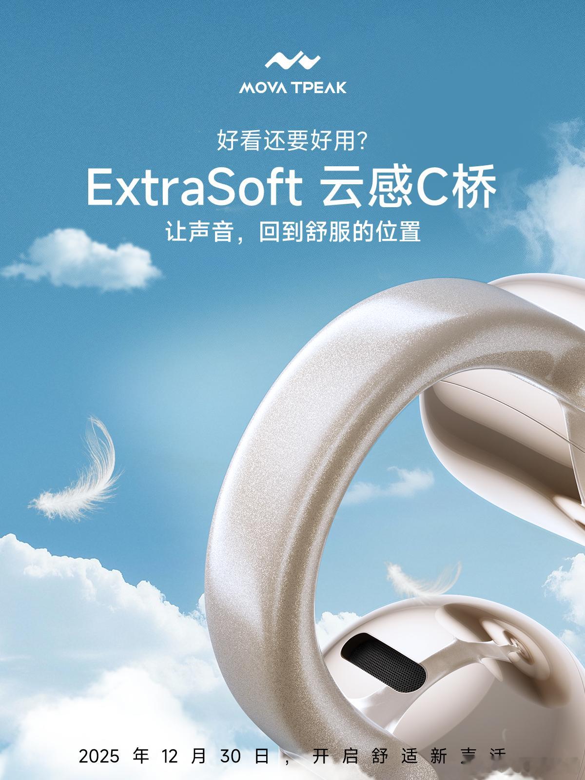 MOVA TPEAK 来了带着“全天听 全天轻”Clip Pro耳夹耳机 来了2025年12月30日,从深圳与大家一起开启舒适新声活