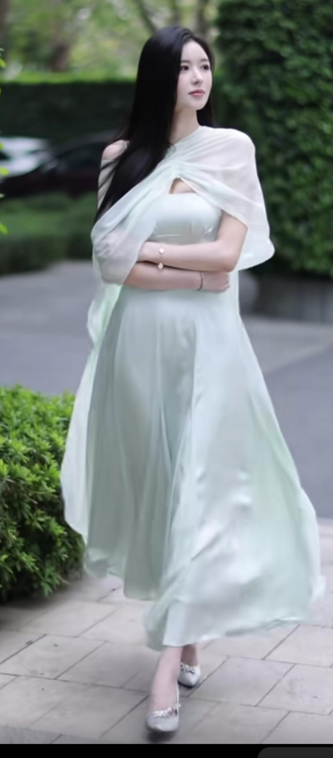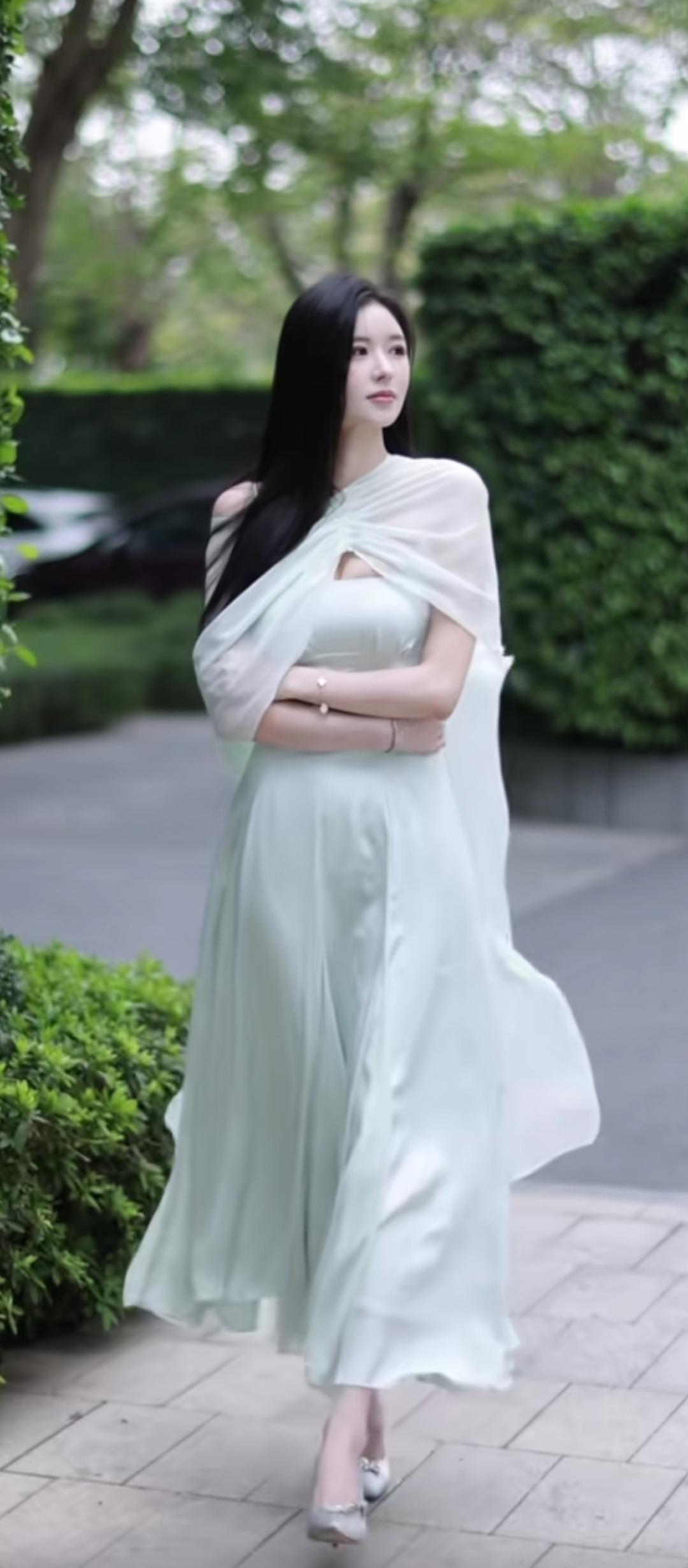 清新脱俗的绿裙仙子,置身于自然之中,宛如一幅唯美的画卷。