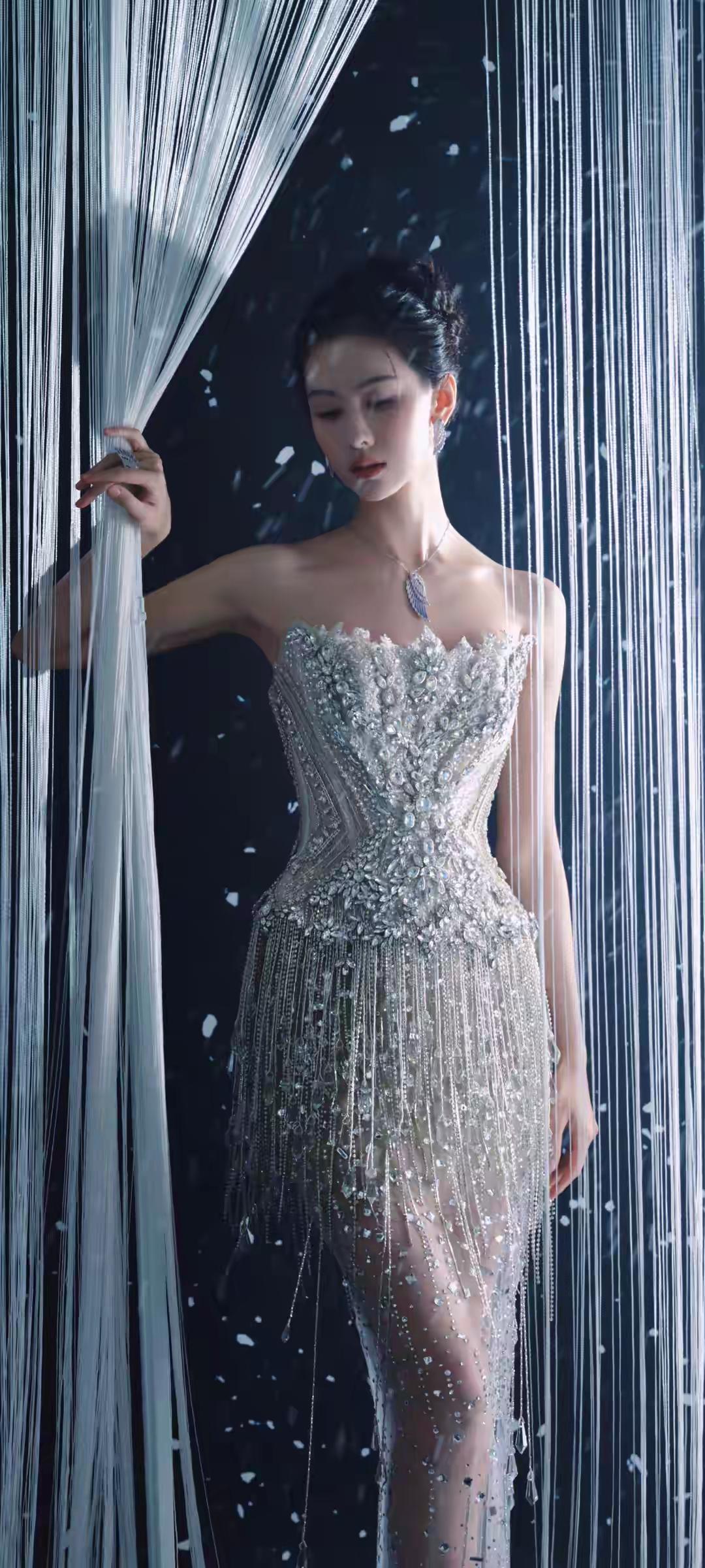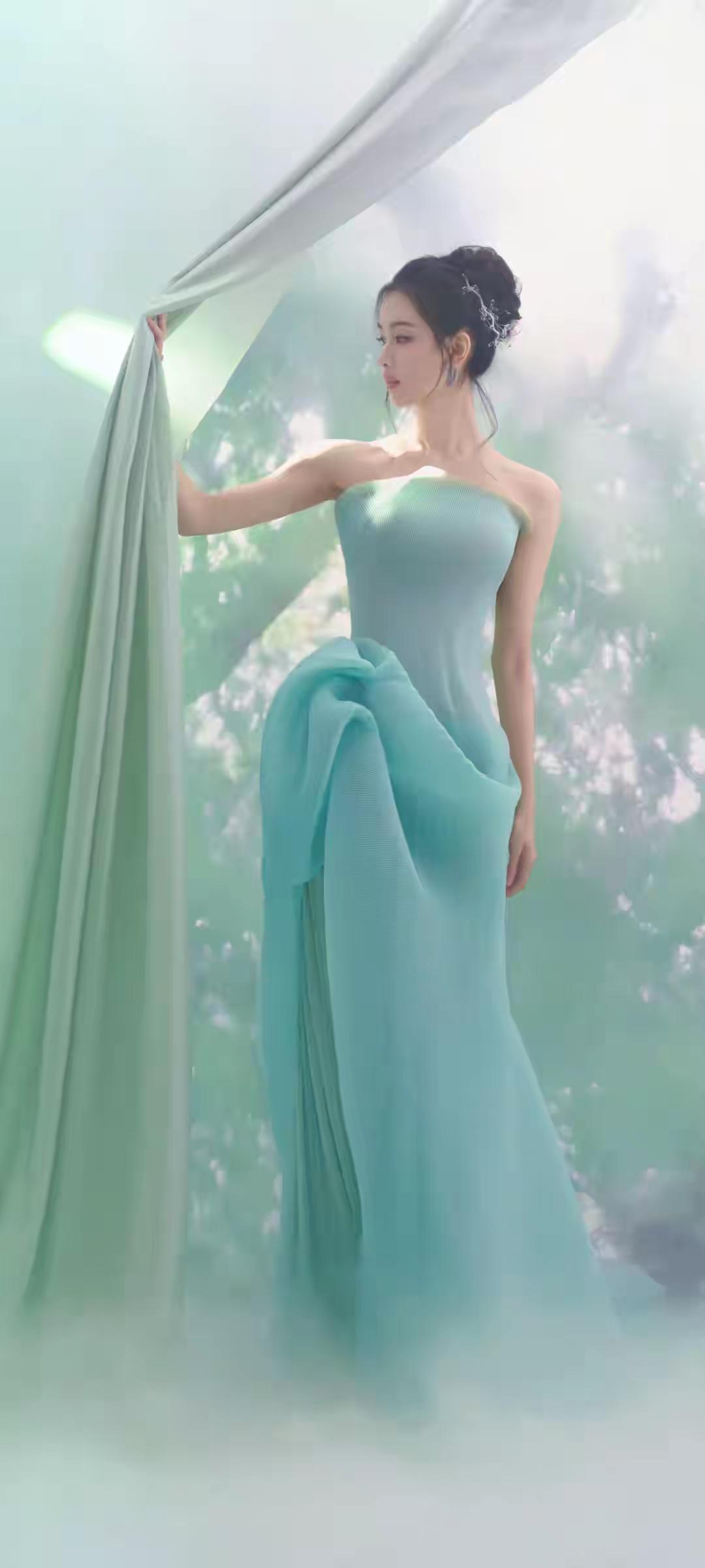 梦幻蓝裙仙子,轻纱飘逸,宛如仙境中的精灵。