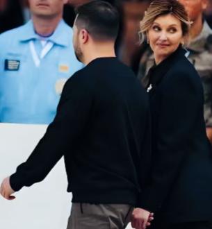 泽连斯基妻子叶莲娜回眸一笑,是在看什么呢? 叶莲娜这回眸一看的动作,是不是很标准啊? 叶莲娜这是被什么给吸引了呢? 泽连斯基则是若无其事的一直往前走!