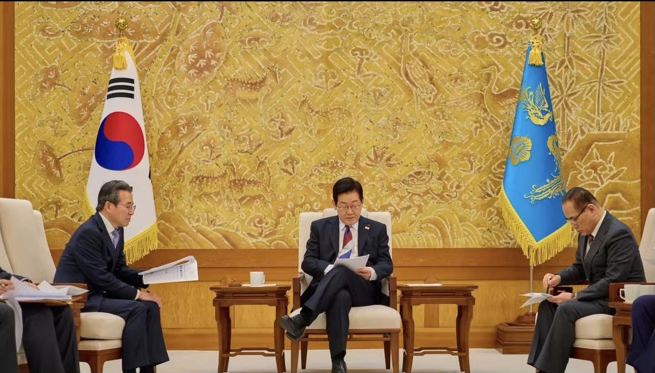 青瓦台上空终究是升起了凤凰旗,李在明力排众议搬进去了,这个占地25万平方米的蓝色宫殿历史上一直都是高句丽的离宫,李在明品味还可以!