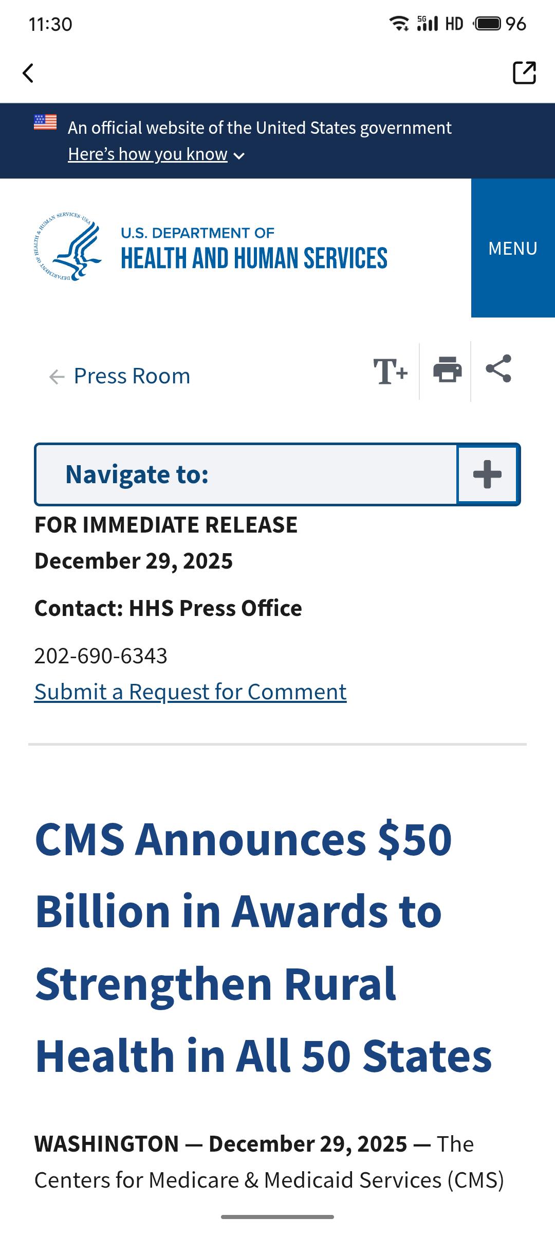 美国近日国会通过发布“农村健康转型计划”(RHT Program),该计划根据《大而美法案》(One Big Beautiful Bill Act)设立的。该计划为期五年,总金额达500亿美元,旨在通过系统性变革,为全国农村地区提供更公平、高效和可持续的医疗服务。 计划核心信息速览 · 计划全称:农村健康转型计划(Rural Health Transformation Program) · 授权法律:《大而美法案》(H.R. 1) · 资金总额:500亿美元 · 执行周期:2026至2030财年,每年拨款100亿美元 · 覆盖范围:美国全部50个州 · 核心目标:扩大服务可及性、加强医疗队伍建设、现代化基础设施、推广创新医疗模式 主要特点与评价 1. 创新的“激励性”资金分配机制 · 分配方式:联邦资金的一半(即每年50亿美元)在各州间平均分配,确保基本投入;另一半则根据各州提交的转型计划质量、农村人口比例、医疗系统需求等因素进行竞争性分配。 · 实际影响:这种机制导致各州首年获得的资金差异显著。例如,德州因提出了详尽的“孤星州远程医疗与人工智能”等六部分战略,获得了最高的2.81亿美元;而新泽西州获得最少,为1.47亿美元。 2. 广泛且聚焦的重点投入领域 资金被规定必须用于至少三个以上指定的重点领域,主要包括: · 扩大服务可及性:加强预防、初级、孕产和心理健康服务。 · 加强队伍建设:通过培训、奖学金和激励措施招募并留住农村医疗人才,并要求最低服务年限承诺。 · 推动技术与模式创新:投资远程医疗、人工智能、网络安全,并发展基于价值的付费模式。 3. 复杂的政策背景与争议 · 背景:该计划诞生于《大而美法案》大幅削减未来十年近万亿美元医疗补助(Medicaid)拨款的背景下。 · 评价:一方面,该计划被官方描述为对农村医疗的“历史性投资”;另一方面,有分析认为,这项为期五年的有限投资,难以完全抵消长期、大规模的医疗补助削减可能对医疗安全网造成的冲击。 总而言之,该计划是一项通过巨额专项拨款和激励性分配机制,系统性提升美国农村医疗能力的联邦计划。其特色在于试图用竞争性资金引导各州进行深度变革,但其实际成效与长期可持续性,仍需在整体医保预算紧缩的宏观背景下进行观察。