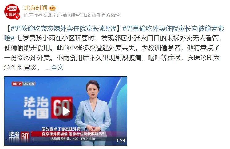 7岁男孩偷吃邻居“变态辣”外卖住院,家长索赔这事,真是让人无语。12月29日的报道,男孩小雨偷拿邻居小张门口外卖,吃后急性肠胃炎住院花两千多。可小张是多次外卖被偷,才点变态辣教训偷拿者。 小雨家长索赔,简直不讲理。小张点外卖是正常行为,辣椒也是常见调味品,这是保护自己权益的防范措施。商家也标注了“变态辣慎点”。律师都说了,小张无需担责,主要责任在家长没尽到监护义务。现在有些家长就爱找外部原因,却忘了教孩子规矩,家庭教育太重要了!