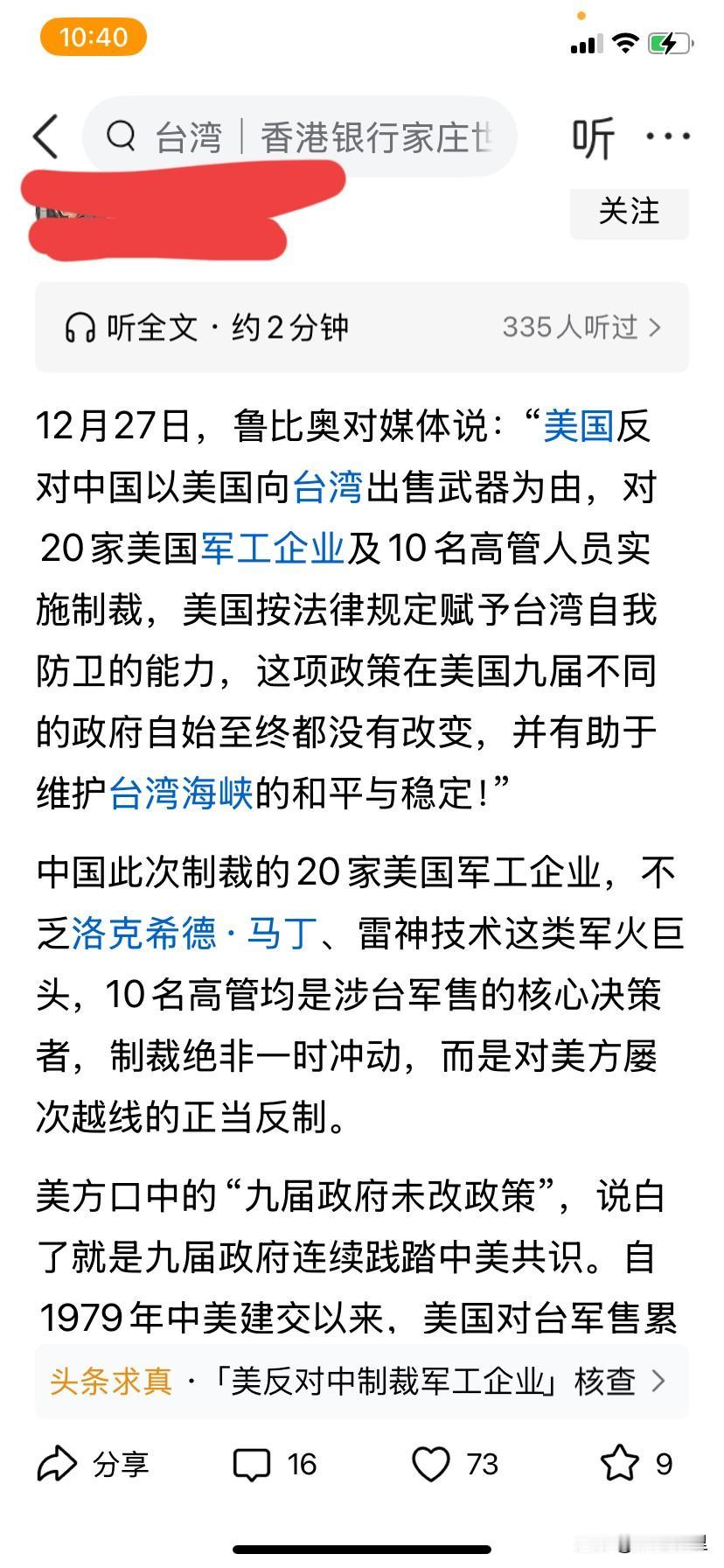 卢比奥说美国对台出售武器是美国九届政府都做过的事,所以我反对中国对美国二十家军工企业和十名高管人员进行制裁,把挑衅和霸道当成了理所当然,我们九届政府都在做的事你不能管,卢比奥脑子进水了,以前你强大时,天天欺负一个弱小的孩子,几十年过去,弱小的孩子长大了,变强壮了,你在欺负当然会反抗,还不反抗的话,下次你就会说在清朝时我们就抢劫过你们,你们都没有反抗,现在抢你们也是正常的,你们不能反抗,都是为你们好,西方政客是一个比一个无耻