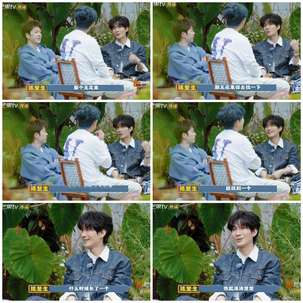 其他兄弟们都没有发现, 只有陈楚生观察到这个细节, 让丽江小院主理人 深感遇到知己。 “厚米团”一走进丽江小院, 这个小院的大厨直接 摘下无花果给他们品尝。 这个看似不经意的举动, 被陈楚生看在眼里。 陈楚生跟苏醒谈及这个小院大厨, 这个大厨就是一个“孩子王”, 这个小院的所有植物都是“孩子”。 这个大厨在这个院子里都是轻快的步伐, 可以感受他在这个地方的快乐。 他不是把这个小院当作 一个工作与赚钱的工具, 他是真的热爱这个地方。 陈楚生觉得大厨看似随手采摘的无花果, 换作他人就一定需要寻找很久, 不是那么简单的事情, 要对这个小院足够热爱与熟悉才行。 如果这个大厨听到陈楚生这番话, 一定深感遇到了知己, 感叹终于找到一个懂他的人了。 你说, 其实陈楚生可能很羡慕他, 羡慕他找到了他真正热爱的东西, 也许陈楚生老了 就想找一个像这样的丽江小院, 度过余下的日子, 是多么惬意呀。