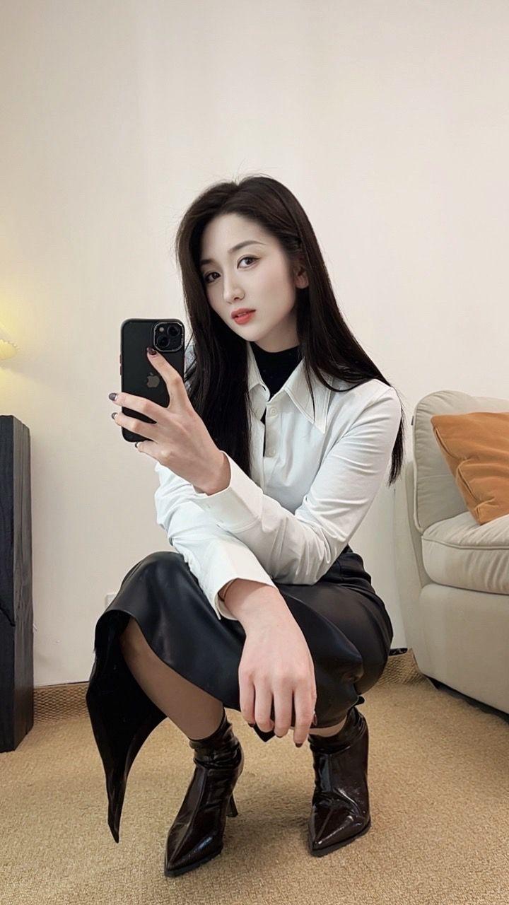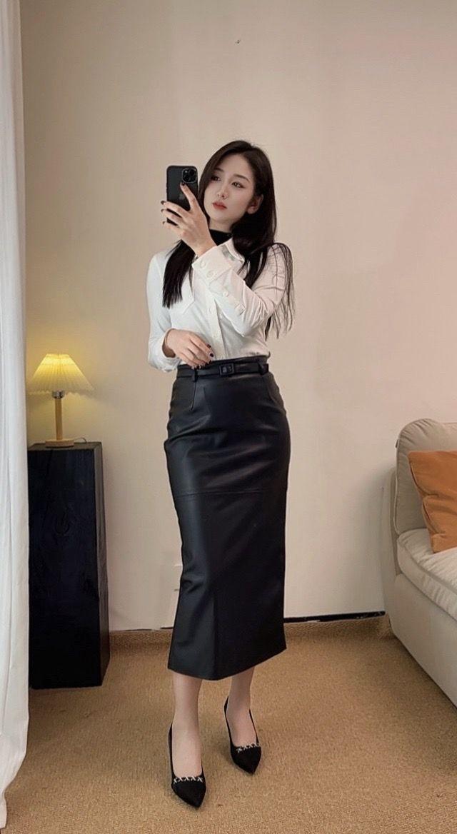 优雅白衬衫搭配黑色半身裙,尽显都市女性魅力!
