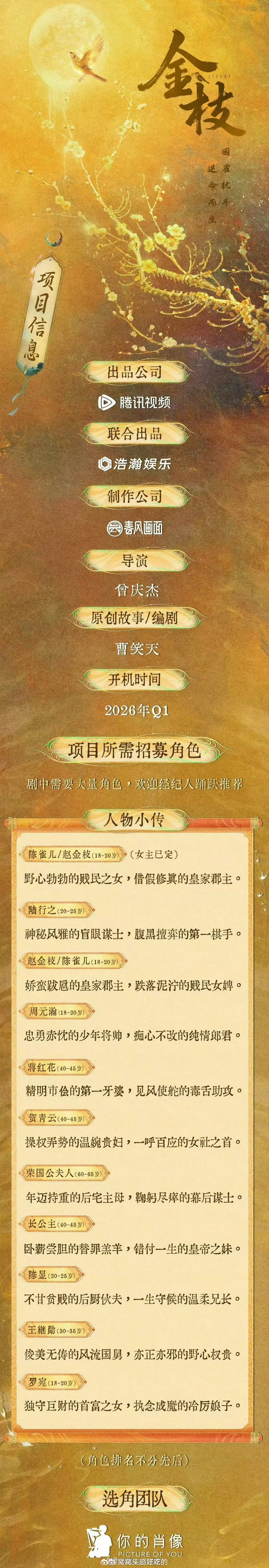 李一桐陈星旭《金枝》即将开机导演是审美非常棒的曾庆杰开机时间:2026年1月下