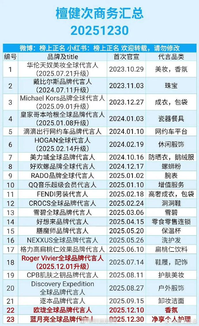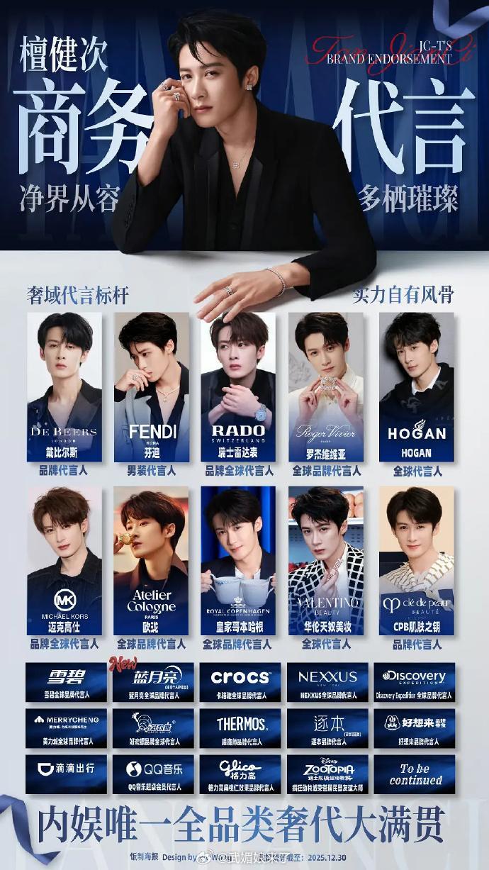 2025年檀健次商务影视全面爆发!猛增15个全新代言,从国民大牌到顶尖高奢,总共