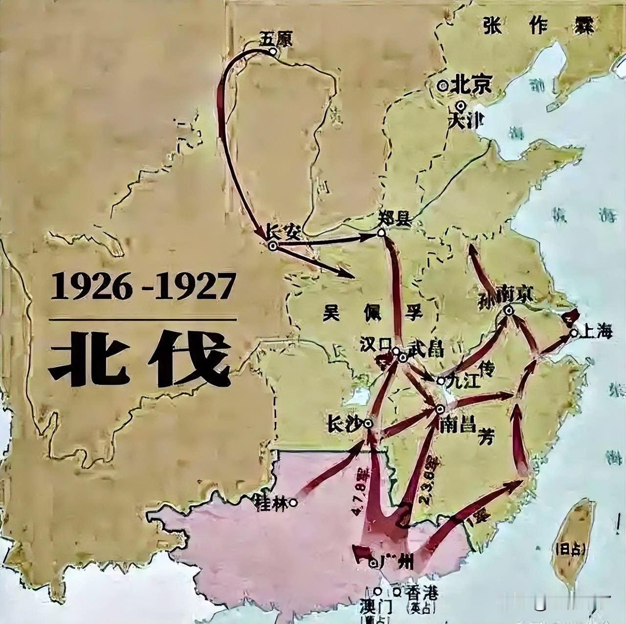 1926年,蒋介石麾下号称10万、实则约5~6万人的北伐军,从珠江一路