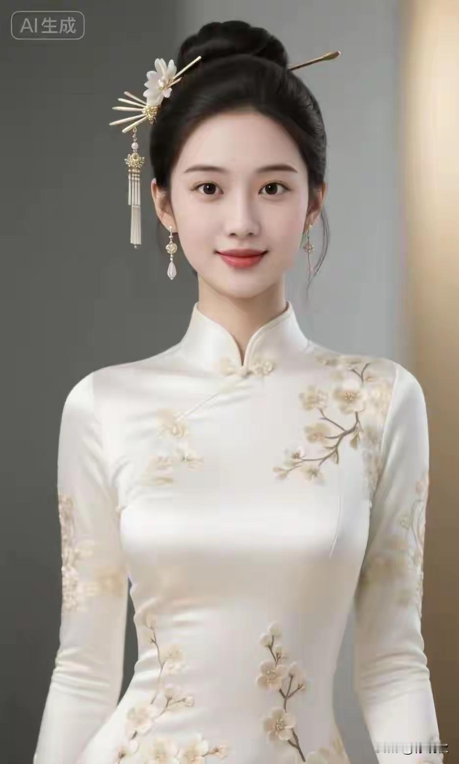 江南旗袍韵 白缎裁裙映水柔, 青花绣缕绕肩头。 画楼依水凝眸立, 满面春风情