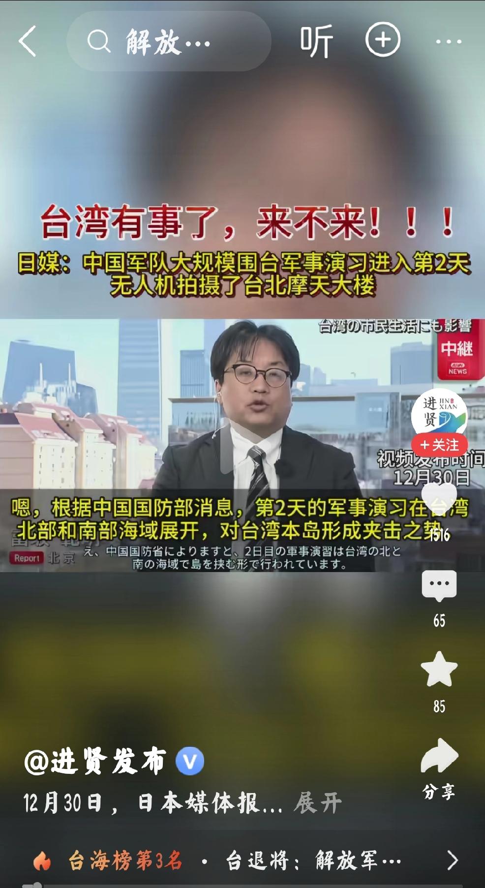 气急败坏,日本极端右翼分子 个人观点:日本明治天皇的玄孙,极端右翼代表分子,竹田恒泰12月29日发文:“这就是中华人民共和国如此野蛮的原因。数千年来,他们一直采用软硬兼施的手段来控制邻国。正因如此,他们永远无法成为一个受世界尊重的国家。” 个人认为,台湾自古以来就是中国领土,是中国不可分割的一部分,这是不容争辩的事实。依然是那套日本军国主义的套路,颠倒黑白,倒打一耙,欺骗挑衅。从这位极端右翼分子的言论就可看出,中国举行的围岛演练正当时。 个人说一句不客气的话:“你来呀”。