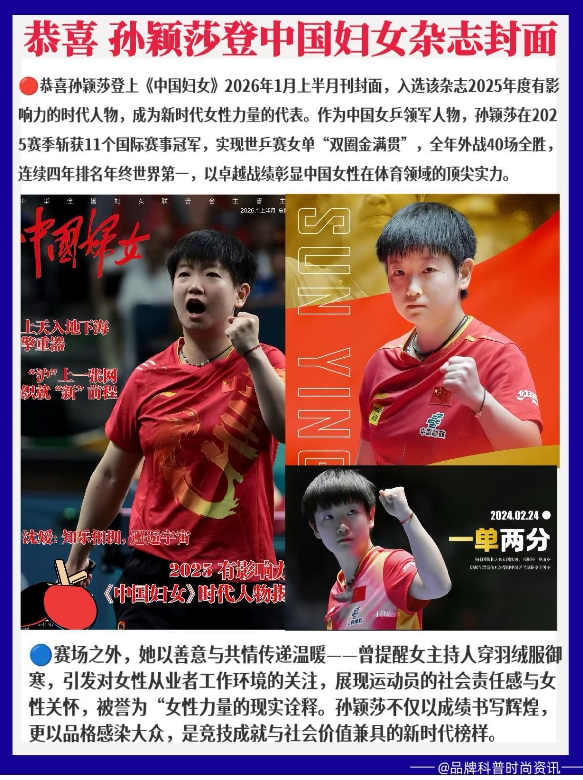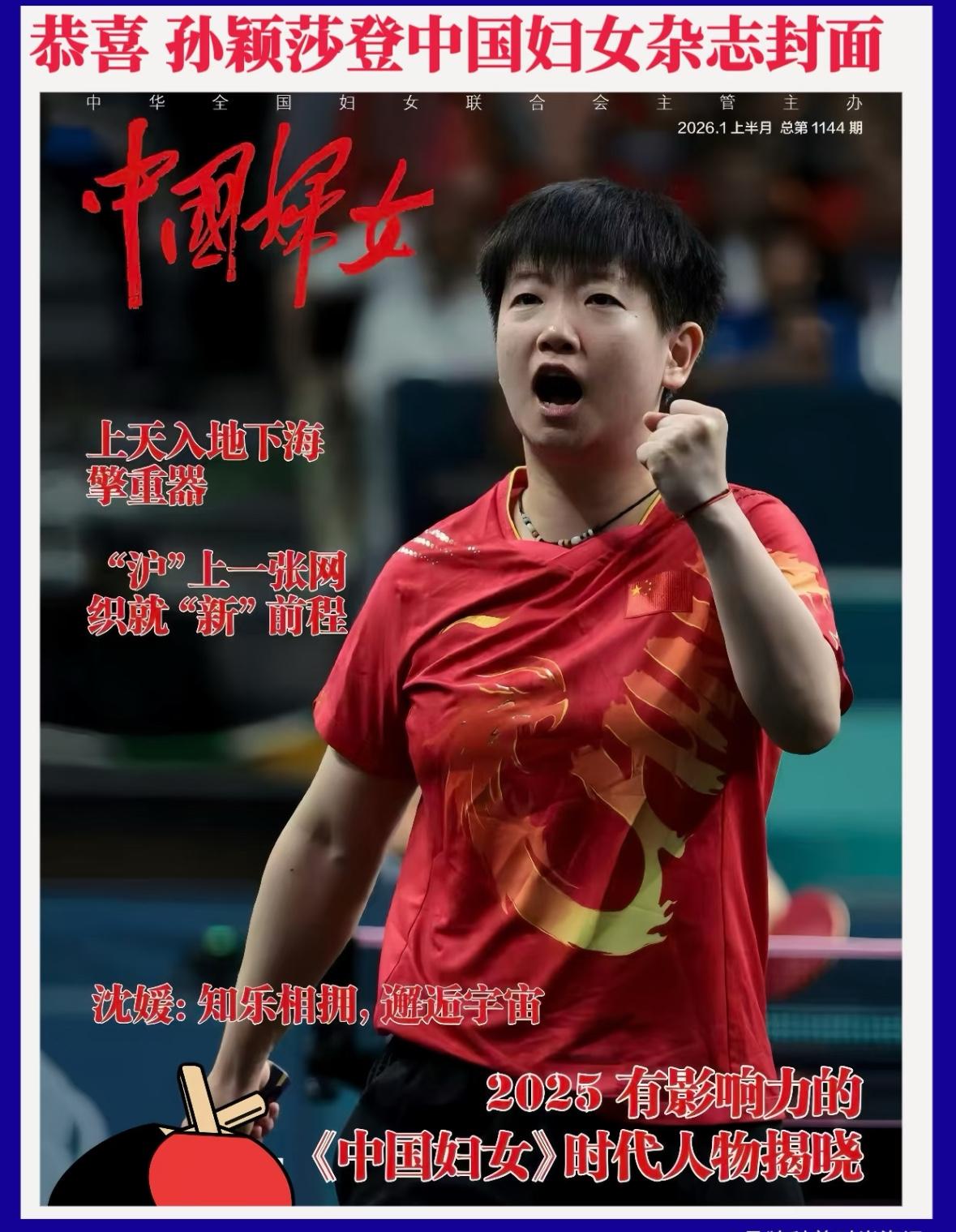贡献孙颖莎登上2026年1月中国妇女报封面 孙颖莎不仅是有影响力的时代人物, 更