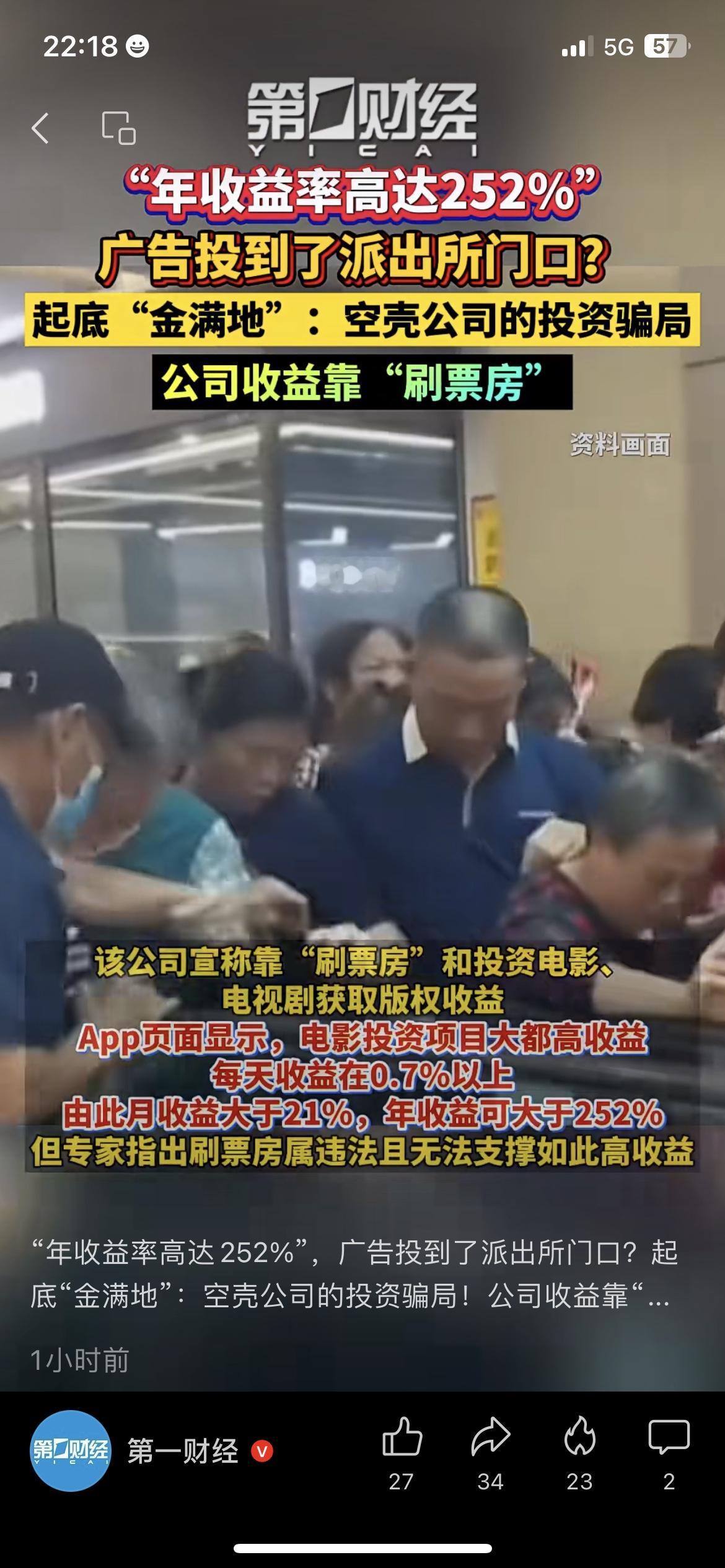 退休族警惕!金满地App是骗局,年收益252%全是坑生活安全 楼下张阿姨拿着手机激动地说:“投资2.7万,两个月赚38万!” 我一看她分享的“金满地App”,居然在派出所门口挂广告,宣称靠“刷票房”年收益252%,拉人还能拿13%提成——这明晃晃的骗局,差点让她把养老钱投进去! ⚠️ 反常识提醒:刷票房本身就是违法行为,正规理财年收益最高才4%-5%,超过10%全是骗局!这个平台就是空壳公司,先给少量返利让你加投,等你投大笔钱就登不上账号。 张阿姨赶紧卸载了App,还把这事告诉了广场舞队的老伙计:“差点把养老钱搭进去,幸好没投!” 警方早就提醒:凡是说“高收益、稳赚不赔”的,全是诈骗! 你身边有人遇到过“高收益投资”诱惑吗?如果亲戚拉你投这种项目,你会直接拒绝还是先核实?广告攒金币 app广告收益
