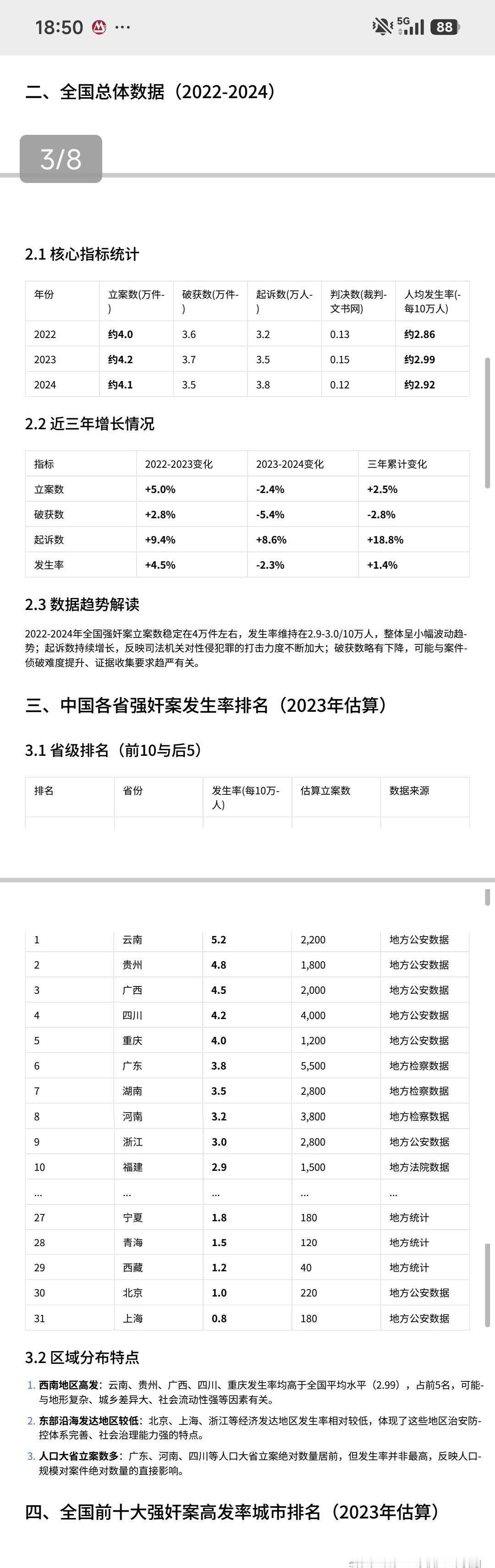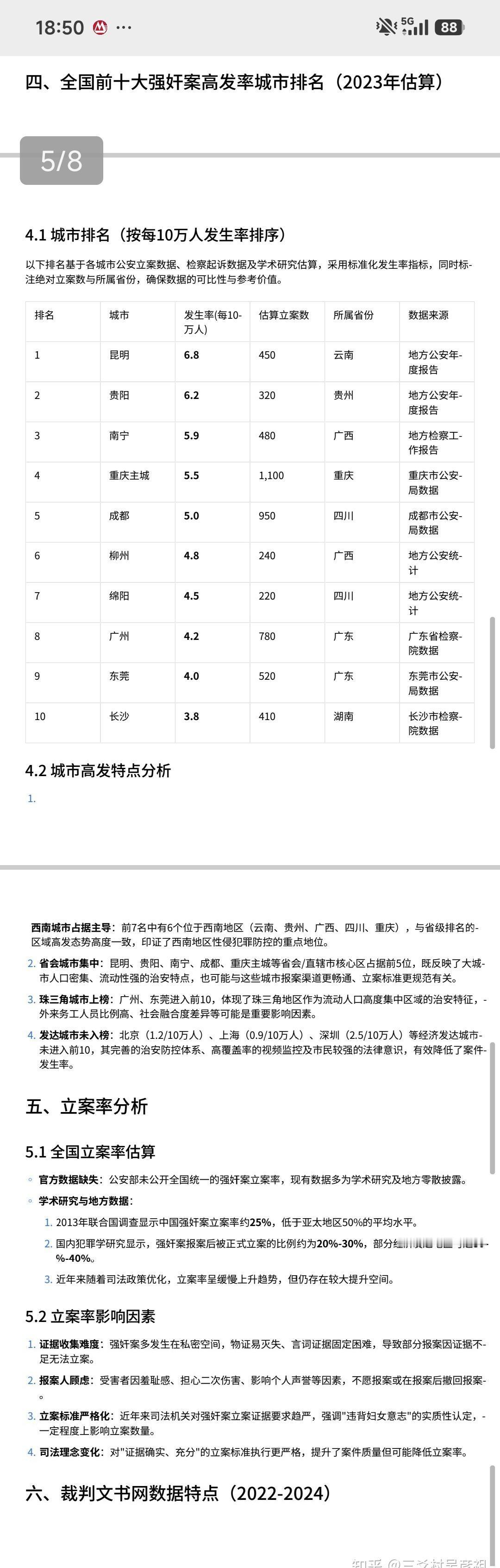 如果男女之间,行房之前,找有关部门报备,能不能避免被冤枉强奸? ------------------------------------ 本着看热闹不嫌事儿大的原则,我让豆包统计了一下数据,先声明这完全是为了犯罪学学术研究进行的统计,完全由AI生成,本人不负任何责任的哈哈哈哈哈。 数据最高的是云南省昆明市