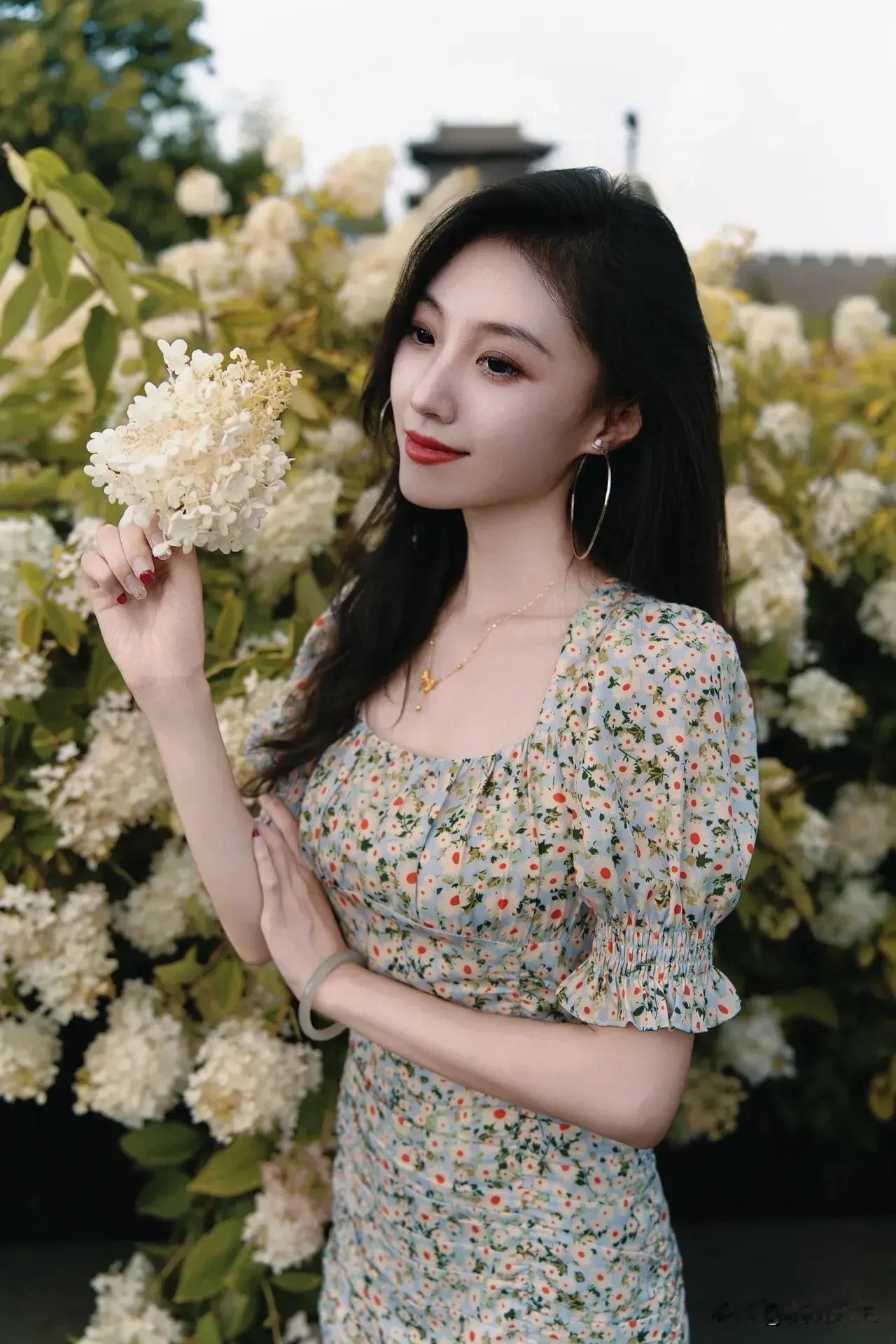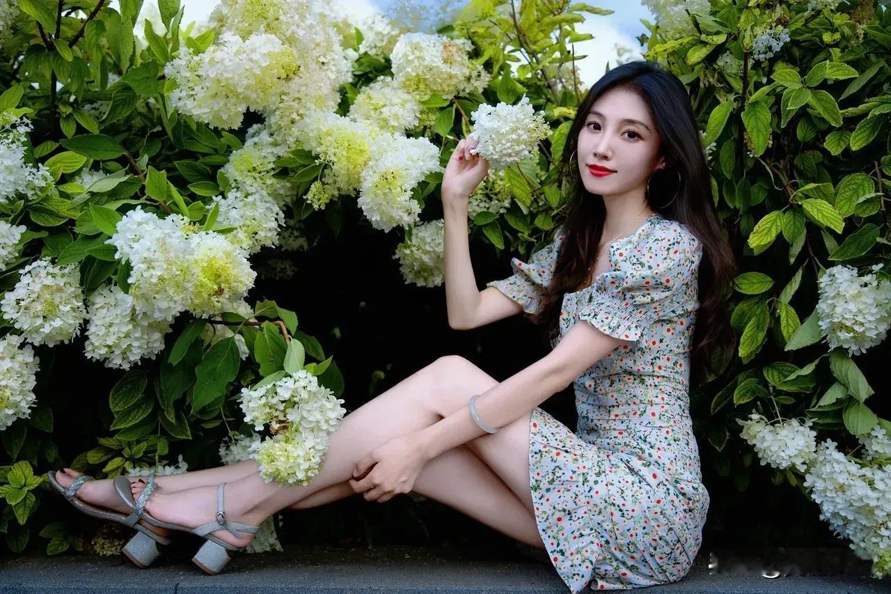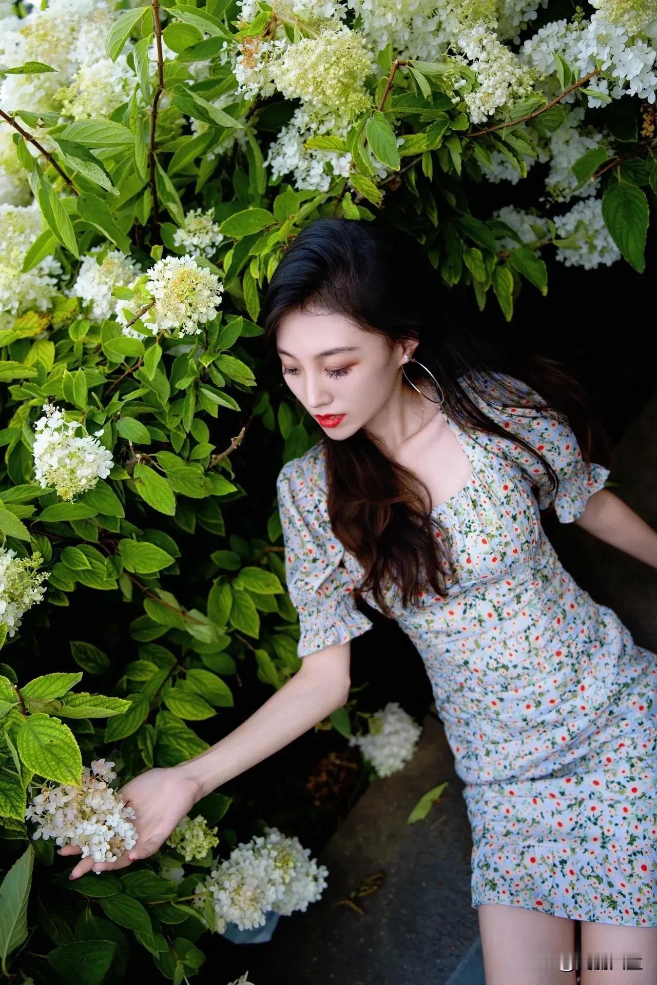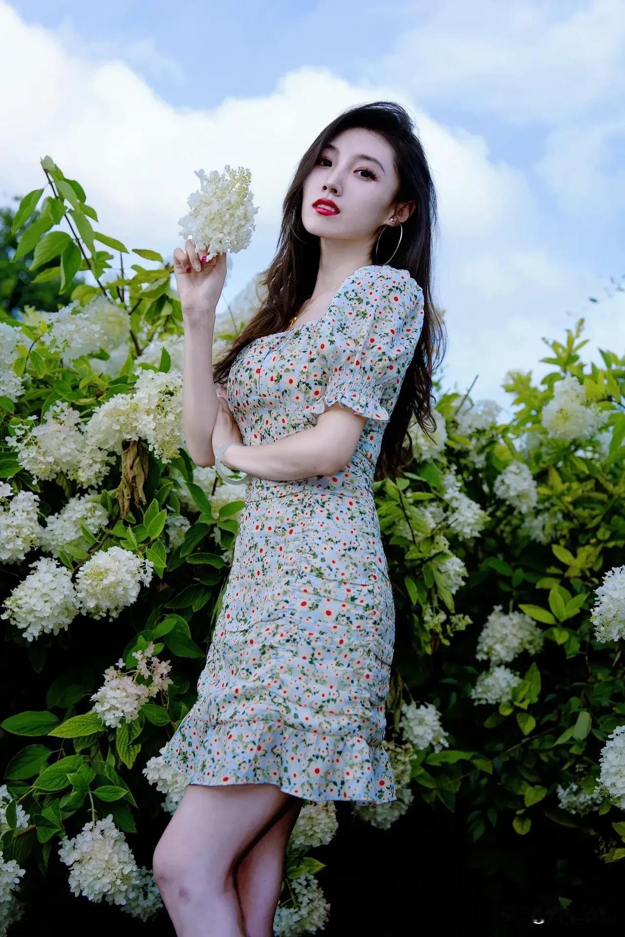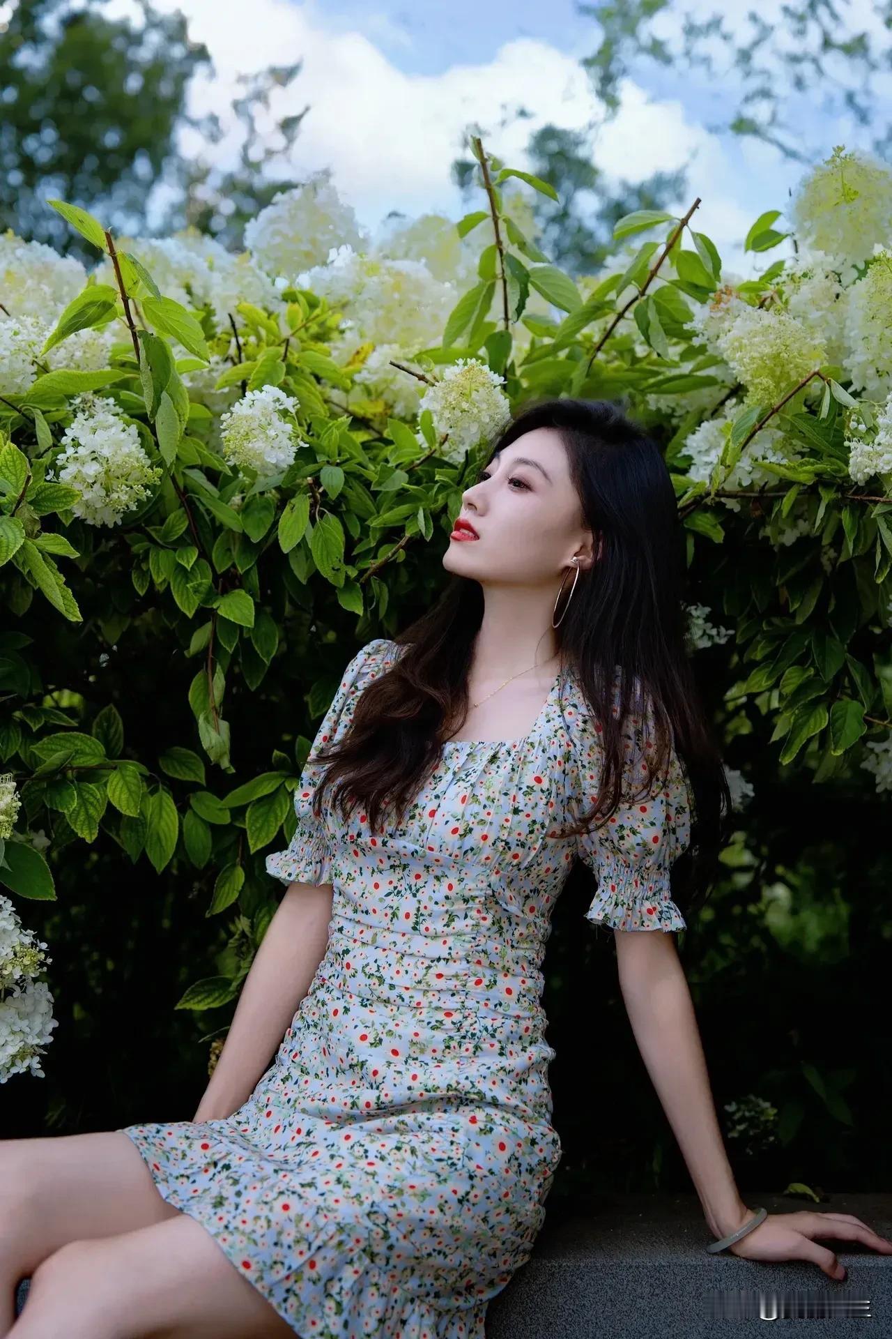 优雅漫步在绿意盎然的桥上,尽显时尚与自然之美。