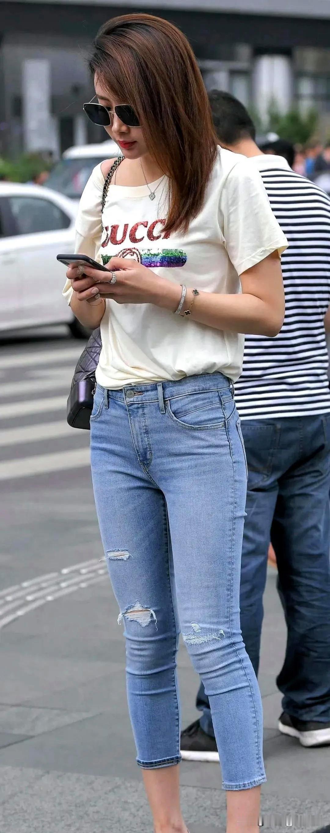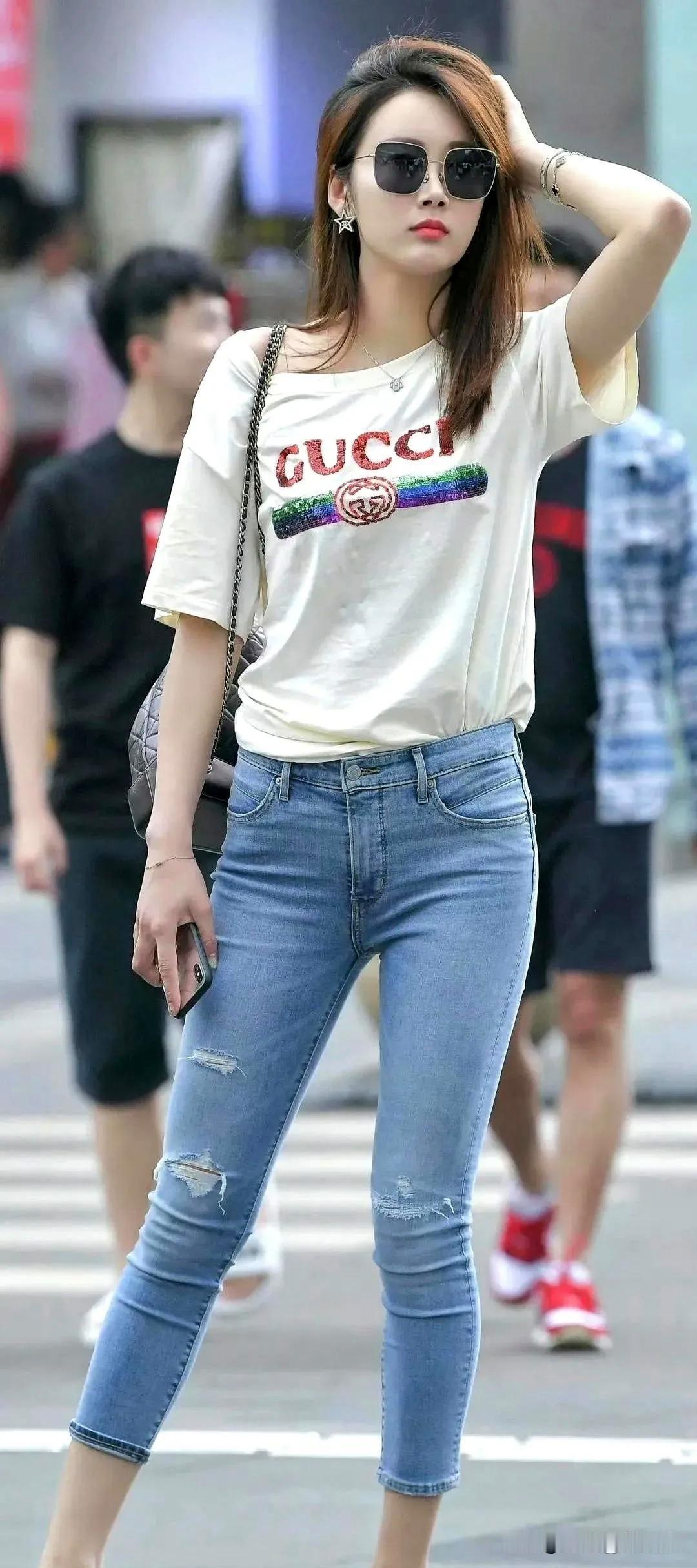 GUCCI T恤搭配破洞牛仔裤,这组合简直是都市时尚的标配。 GUCCI T恤自带奢华感,经典的双G logo辨识度超高,穿上瞬间提升气场。破洞牛仔裤则增添了随性与不羁,膝盖处的破洞设计,露出若隐若现的肌肤,时髦感爆棚。 走在都市街头,这样的穿搭吸睛度百分百。既不会像正装那么严肃,又比普通T恤牛仔裤更有质感。无论是去逛街、约会,还是参加派对,它都能让你成为人群中的焦点。再配上一双小白鞋或者马丁靴,时尚度直接拉满,轻松拿捏都市时尚感。