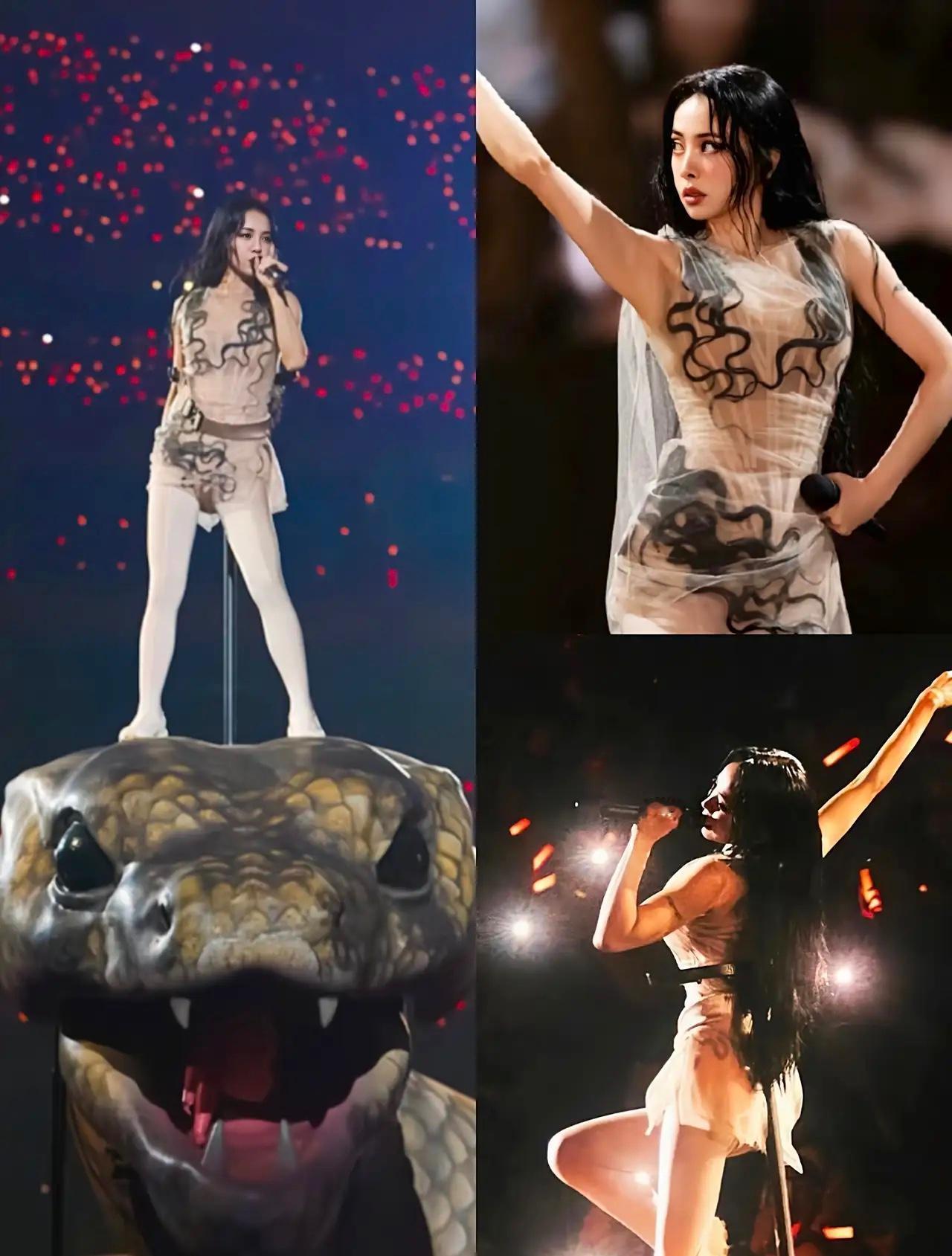 大家发现了吗, 蔡依林才45岁, 可她身上的这股“味道”根本就藏不住! 45岁蔡依林的舞台气场,真的杀疯了!台北演唱会上踩着30米机械巨蛇开唱,蛇身比她大十倍,可她站在上面全开麦稳如CD,眼里的光比蛇鳞还耀眼。 她总穿露肤度超高的舞台装,却从没人说擦边,因为那不是讨好的性感,是掌控全场的霸气。 真正的女王从来不是靠年龄定义,而是把经历酿成底气,把自律刻进骨子里。 你被蔡依林这场“蛇系女王”舞台狠狠戳中了吗?蔡依林 蔡依林热舞 蔡依林暗黑造型 蔡依林旧照 蔡依林舞团