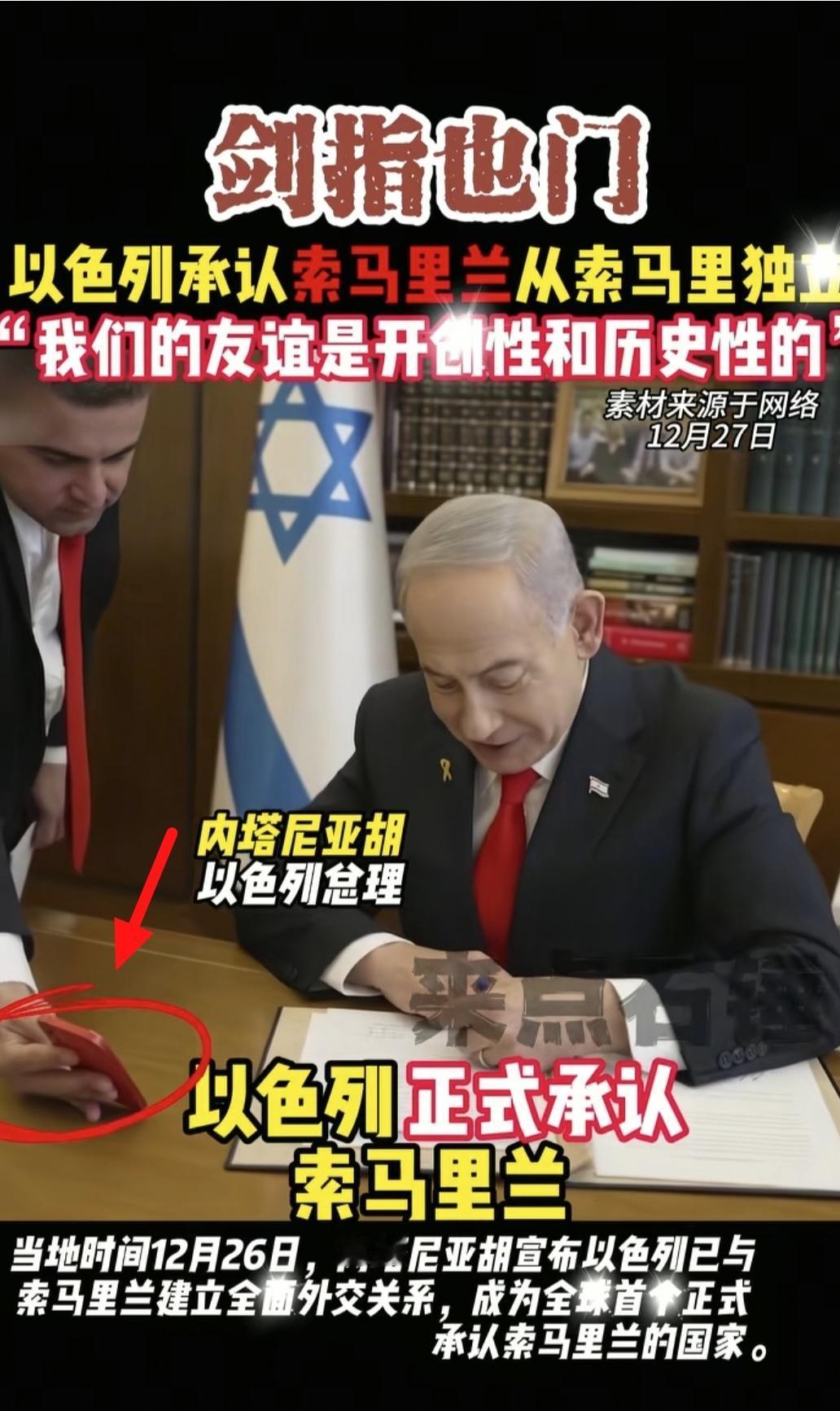以色列在取得中东大势全赢局,并且完全控制局面之后,不沉寂于现状,将继续扩展优势。 以色列最近这步棋,走得又狠又准,刚在中东稳住阵脚,立刻把目光转向非洲之角,直接承认索马里兰为独立国家,成了全球第一个吃螃蟹的联合国成员国。 这不是单纯刷存在感,而是一场彻底颠覆红海格局的深度布局。有人说以色列是在玩火,但更像是在下着一盘没人敢想的大棋,中东的牌刚理顺,它已经开始在非洲集结力量。 从红海航道到亚丁湾,这一招不只是外交突破,更是军事卡位。别看索马里兰这个地方小,地理位置却是天生的“战略高地”。 以色列选择在这个时间点出手,背后的算盘打得非常清晰:不是为了索马里兰本身,而是为了彻底打通它通往非洲的战略走廊,把握住红海非洲中东这条未来十年最关键的安全与经济动脉。 谁掌控红海南口,谁就掌控全球贸易走廊的命脉。曼德海峡不仅是全球石油运输的黄金水道,更是以色列能源和物资运输的生命线。 过去一年,胡塞武装几乎每天都在红海“练靶”,美英虽有反击,但治标不治本。 以色列这次看准了柏培拉港,一举拿下驻军权限,把自己的前沿阵地直接推进了亚丁湾,距离胡塞武装控制区不到200公里。 这是什么概念?以前要靠卫星和远程打击,现在可以“贴脸开大”。更重要的是,这个港口还是个能停10万吨级油轮的大码头,既能打仗,又能搞物流。一举两得,成本骤降,效果翻倍。 伊朗那边估计已经开始头疼了,向胡塞输送武器的海上线路,现在基本被以色列卡住。曼德海峡变成以军的“内湖”,胡塞武装的后勤线被直接掐掉。 如果说军事是拳头,那外交就是以色列的刺刀,这次承认索马里兰,不仅是给自己找盟友,更是把阿拉伯世界的统一战线撕开一个口子。 别看索马里兰是穆斯林地区,但它和传统阿拉伯国家关系并不密切,反而更倾向于与西方接轨,这就给了以色列一个绝佳的突破口。 以色列把“承认换合作”的策略继续玩下去,结果就是,一边拉拢阿联酋这种海湾国家,一边把触角伸到非洲大陆,构建起“以色列索马里兰埃塞俄比亚”的战略铁三角。 这几家凑在一起,不仅能打通红海两岸,还能把非洲东部和阿拉伯半岛连成一体。 更妙的是,这种合作是有实打实利益的,不只是喊口号。索马里兰急需国际支持,以色列想找战略落脚点,双方一拍即合。 以色列顺势把《亚伯拉罕协议》扩展到非洲,原本的“中东小圈子”变成了跨洲联动的大网络。 外界可能不太熟悉索马里兰,但这个地方其实早就“脱离”了索马里,只是没人愿意承认它,从1991年起,它就有自己的政府、军队、货币和护照,但国际社会一直视而不见。 以色列这次主动承认,不光是给索马里兰一个“身份”,更是给它一个“未来”。 索马里兰缺资金、缺技术、缺国际曝光度,以色列刚好能提供这些。农业、科技、军工、港口、能源……几乎是全面合作。 对以色列来说,这不仅仅是一次援助,更是一次深度绑定。你给我地盘,我给你发展。未来这里很可能成为以色列在非洲的“桥头堡”,甚至变成一个“影子卫星国”。 而且从经济上讲,这也是一笔划算的买卖,以色列2025年的服务出口已经逼近历史高点,迫切需要新市场。 索马里兰虽然小,但辐射能力不容小觑,背后连着非洲东部好几个资源大国。以色列这一跳,不是孤注一掷,而是“借壳上市”。 当然,这步棋走得再漂亮,也不是没有代价。非盟、阿盟、伊斯兰合作组织、欧盟全都跳出来反对,索马里政府更是怒不可遏,坚决不认这笔账。以色列现在一边扩大影响力,一边也在加剧地缘摩擦。 但这正是以色列惯常的策略:以斗争争空间,用实力换话语权。从建国以来,这个国家就没指望过国际舆论的掌声,它更习惯靠行动制造现实。 这次承认索马里兰,就是一次典型的“先斩后奏”,等尘埃落定,再谈共识都不迟。 更何况,以色列并不是孤军作战。美国虽然没有公开表态支持,但特朗普政府对以色列的支持早已无需多言。 在当前美伊矛盾持续、红海局势紧张的背景下,以色列的每一步棋,其实也在帮美国“清理战场”。 以色列承认索马里兰,不是一次临时起意的赌博,而是一场布局多年后的精准出击。它既是对红海安全格局的重塑,也是对非洲战略空间的大胆拓展。 从中东走到非洲,以色列正在把“外围战略”玩出新高度,未来局势如何变,还需时间检验,但可以肯定的是,以色列绝不会满足于现状。 它已经习惯在动荡中求生,在混乱中扩张。控制,是它的手段;扩张,才是它的目标。