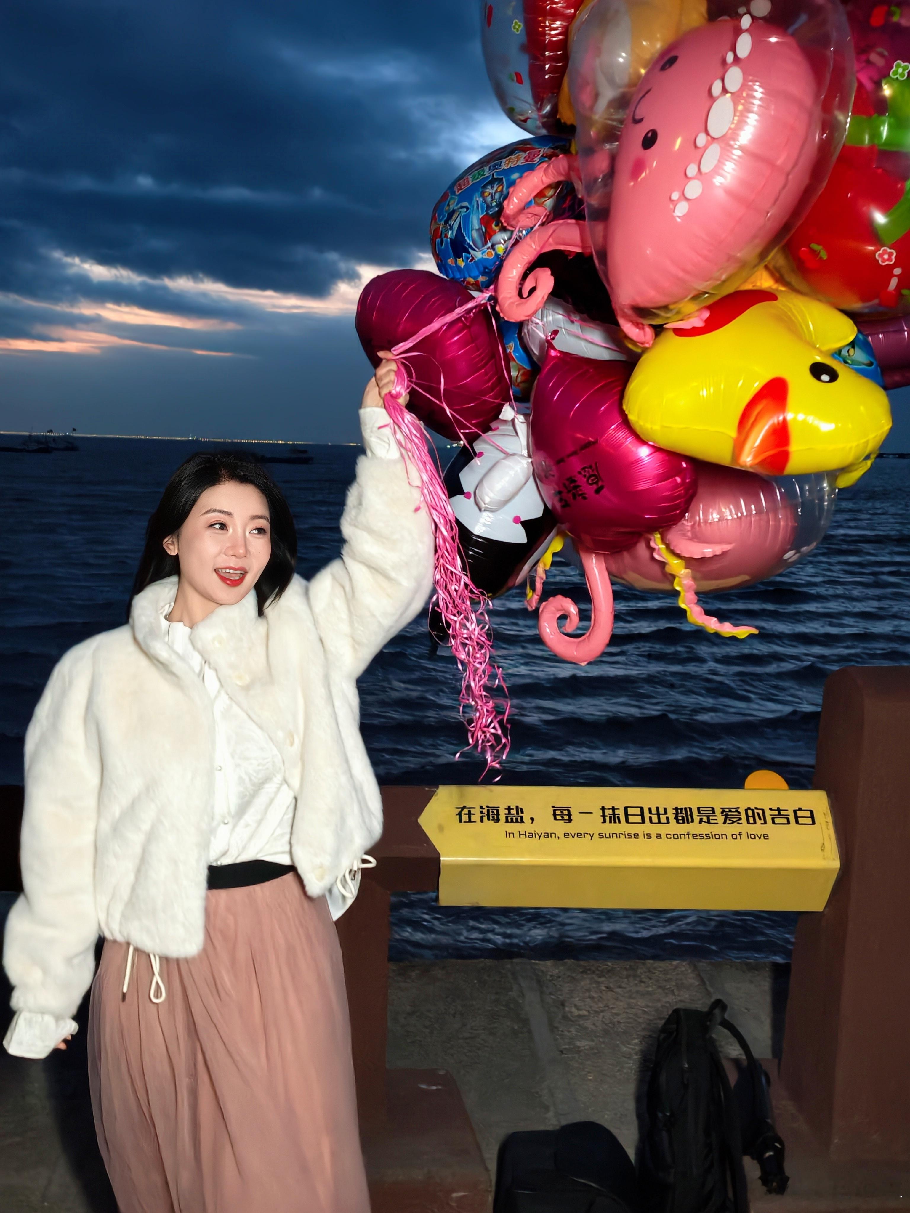 谁能拒绝余华老家的海盐日出啊,太好看了,随便往那一站,都是自带氛围感的画面