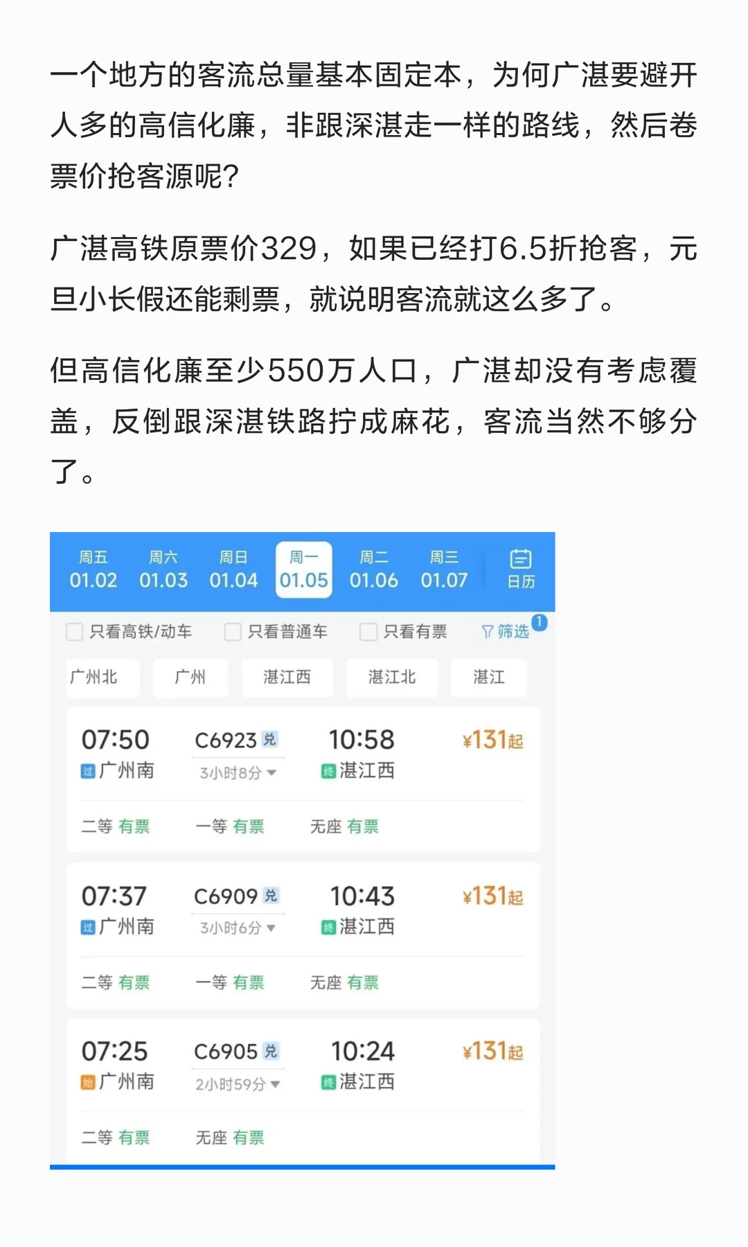 广湛高铁通车即遇冷,为何不走高信化廉