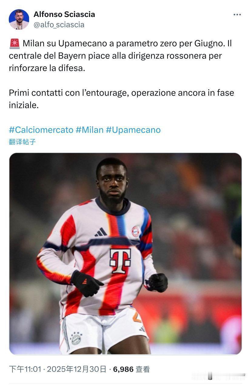 乌帕梅卡诺!米兰有意在六月份以免签方式签下乌帕梅卡诺。AC米兰管理层希望引进这位拜仁中后卫来加强球队的防守。目前米兰已与球员经纪人进行了初步接触,这笔转会操作仍处于谈判阶段。没记错的话他跟拜仁慕尼黑要的是税后1000万欧元,还要2000万欧元的签字费,这是米兰能要的起的球员? 个人觉得接触可能真的存在,毕竟球员经纪人与米兰发个信息米兰需要搭理人家,友好的询问下球员情况绝对是正常的,但说购买不对,说免签乌帕梅卡诺,这个可能性太小了,毕竟这个哥们现在的工资就不是我们能承担的,免签还要涨薪,就更不是米兰能承担的了。 乌帕梅卡诺与拜仁慕尼黑的合同要价即便以皇家马德里俱乐部的标准来说依然被认为过高,被认为是经纪人利用曝光获利,就像之前阿方索戴维斯和拜仁续约一样,不过在今天依然有球员愿意拿米兰抬价也说明米兰还有些价值,虽然落魄了,但依然是落魄豪门。
