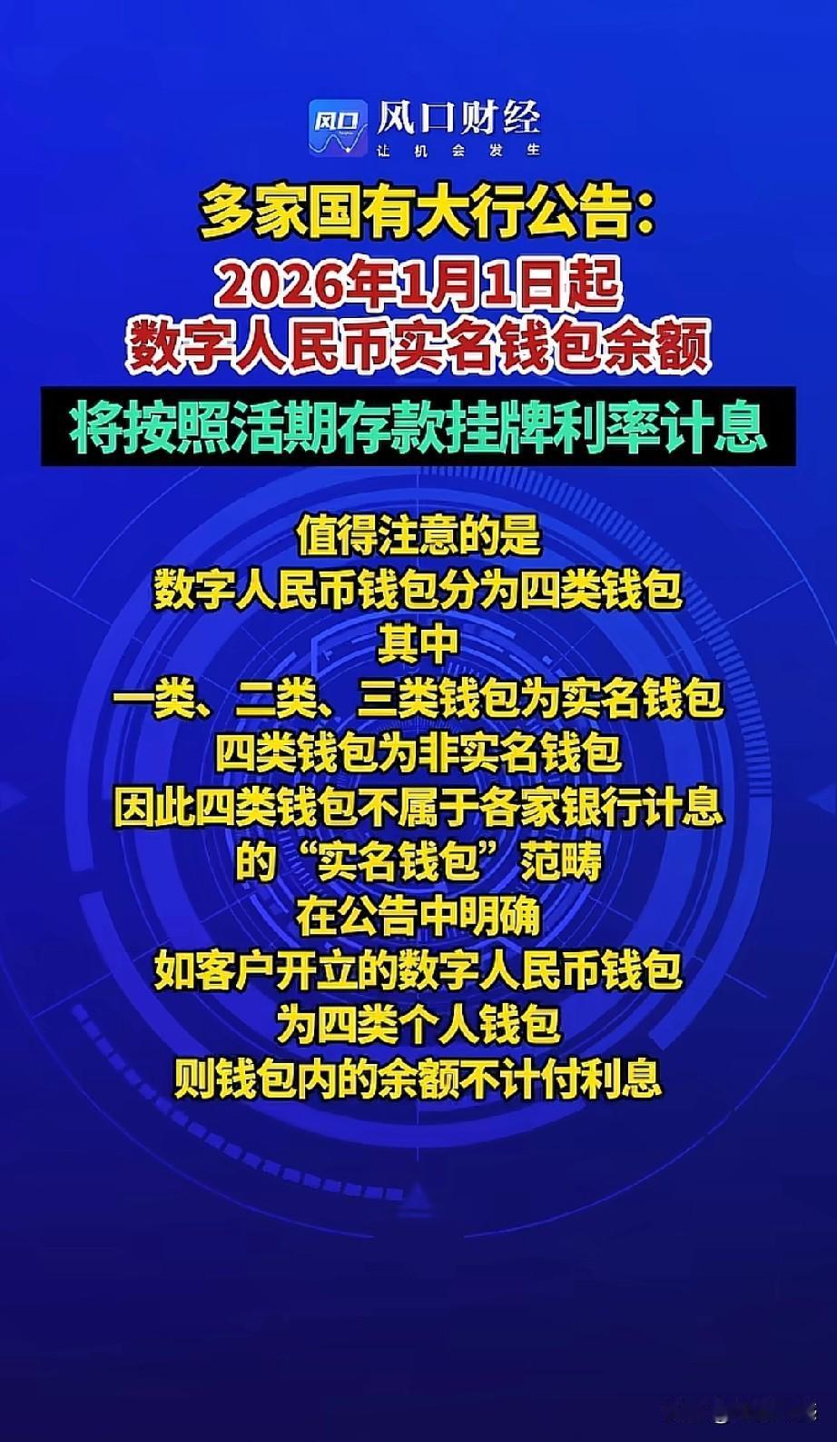 2026年1月1号,数字人民币说来就来了,中国工商银行,中国农业银行,中国建设银行,交通银行,中国邮政储蓄银行,都已经发布了公告,从1月1日起,这些银行将为客户开立数字人民币实名钱包余额,这真是一个好消息,这两天有时间,为自己办一下这方面的业务!