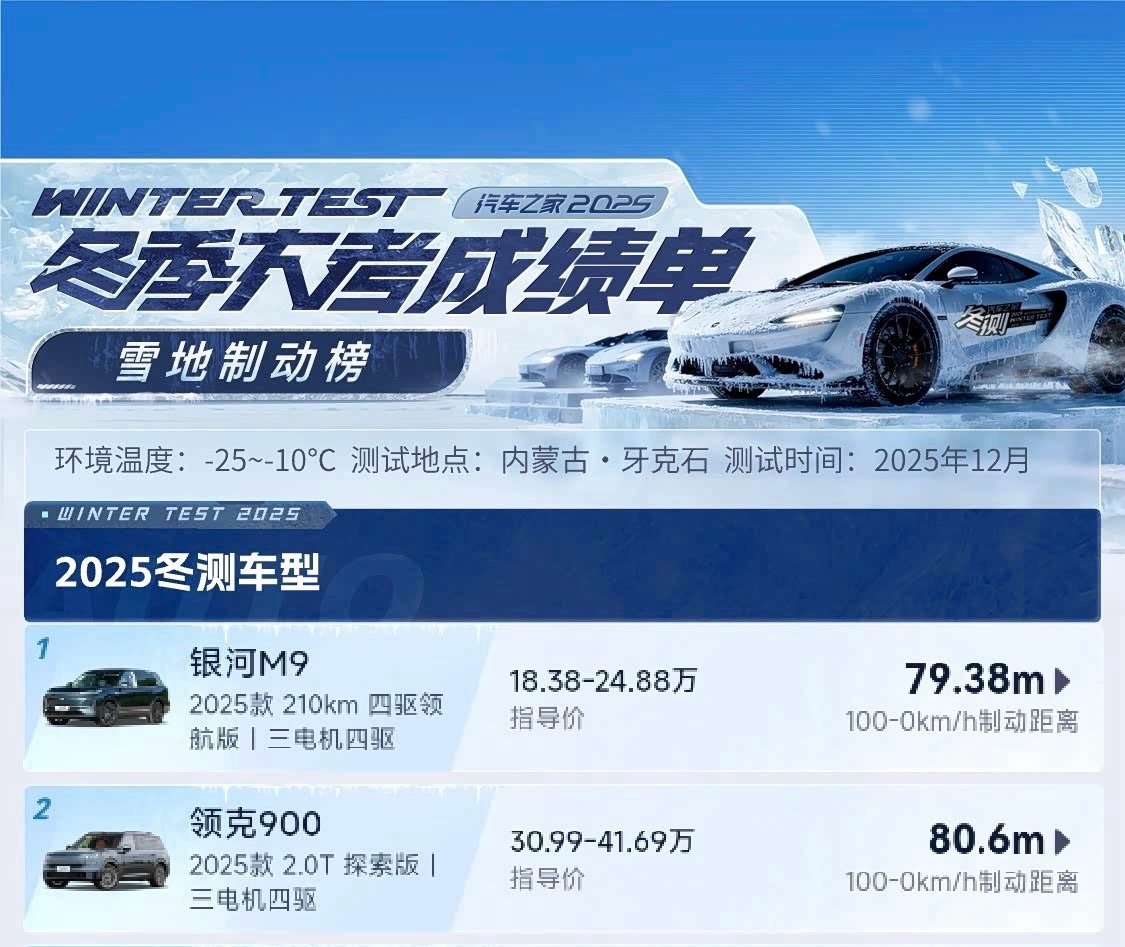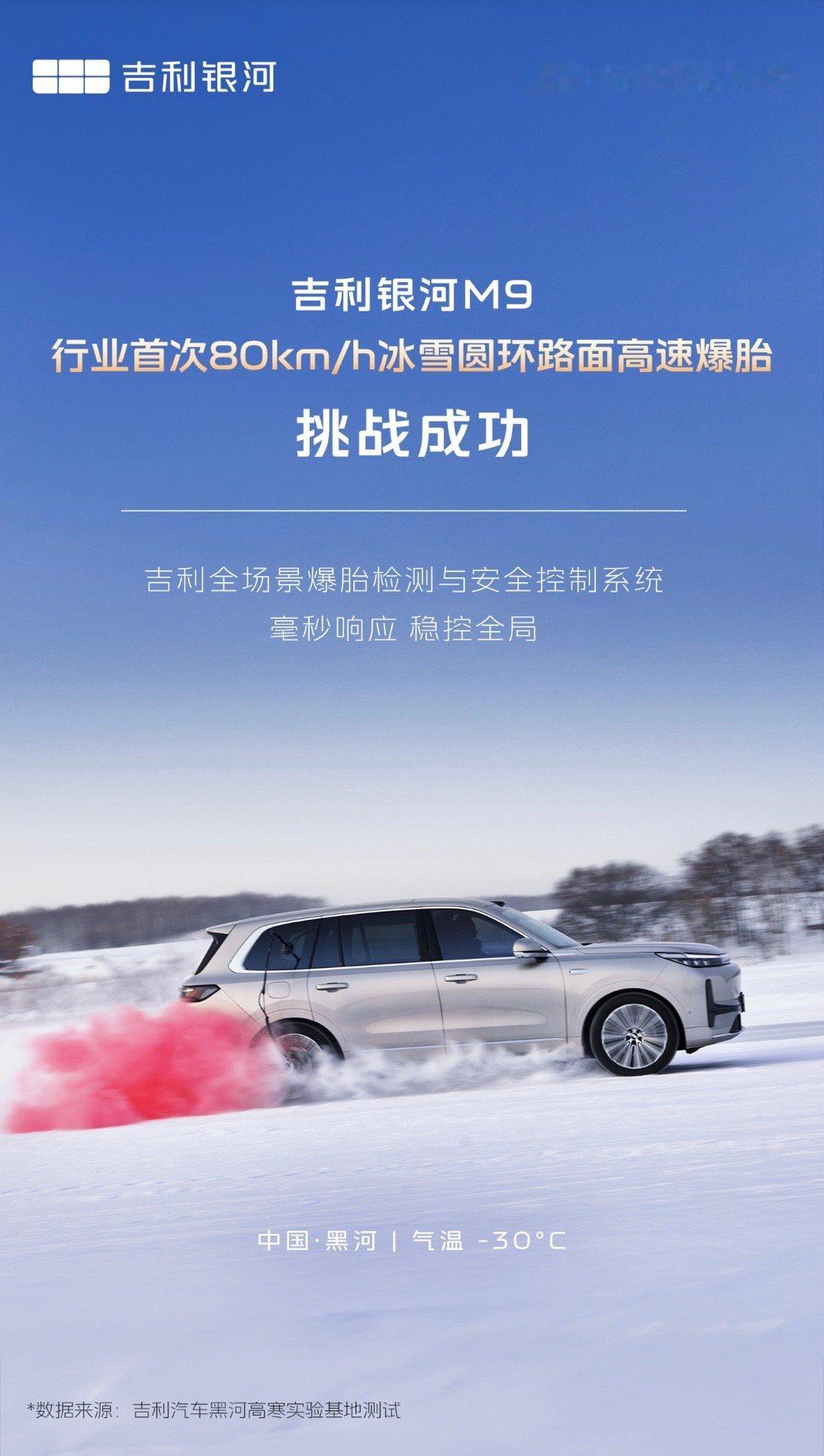 来真的?爆胎测试还得高管亲自上雪地爆胎稳稳当当?吉利银河M9这一波测试超级亮眼! -30℃黑河极寒雪地,80km/h弯道突然爆胎,换别的车可能早失控了,但吉利银河M9居然稳稳循迹,从容停靠!这次挑战是吉利总经理范峻毅亲自上阵,非专业车手+非雪地模式,硬是拿下行业首次雪地弯道爆胎测试,这安全底气绝了!如此亮眼的成绩,全靠硬核配置撑腰。AI数字底盘像“超级小脑”,爆胎后2ms内就能精准控车,三电机四驱+双腔空悬加持,雪地稳得一批。汽车之家冬测里,它是唯一每次雪地制动都刹进80米的车,加速还冲进前三,堪比40万级水准!央视全程探访背书,品牌更是最快破百万销量的新能源选手,银河M9上市就连续月销破万,11月卖了10639辆!敢拆敢撞敢冬测,安全大六座,选它准没错!