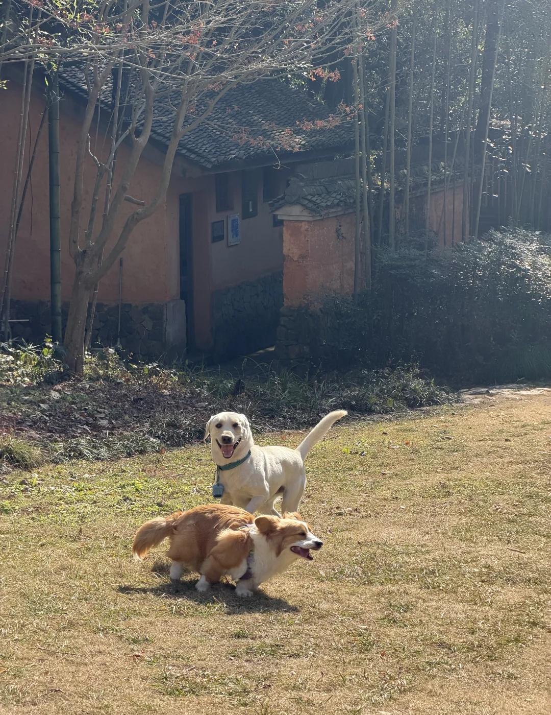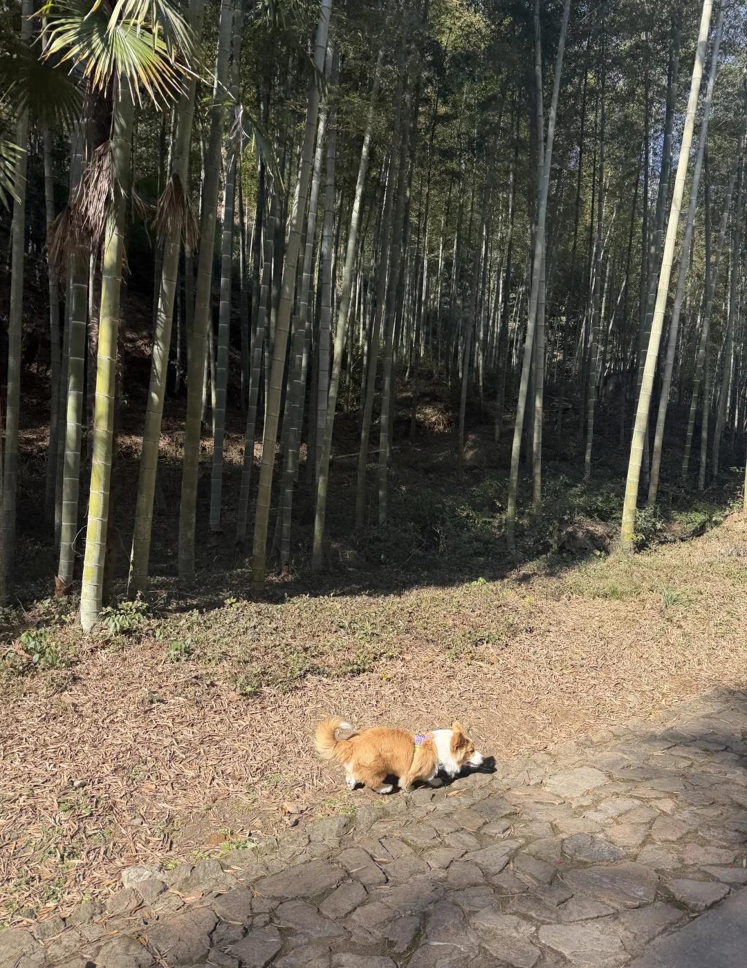周末遛狗好去处 黄公望隐居地,周末人比较少,不要门票,上下山有观光车,走路单程大概2.5公里。全程风景一般,基本上只有竹林,但是经过的每一片草地和座椅都很干净,终点是小洞天,黄公望的住所。上厕所很方便,公厕也很干净,工作人员都笑眯眯的。离奥莱和铜鉴湖公园挺近的,铜鉴湖公园也不错。如果要一个楼梯没有的话,走的道和开车的道是同一个,小狗和小孩要注意安全,如果不和车一个道就有一些上下楼台阶,走着会累一点点。带小狗去徒步 杭州遛狗 柯基
