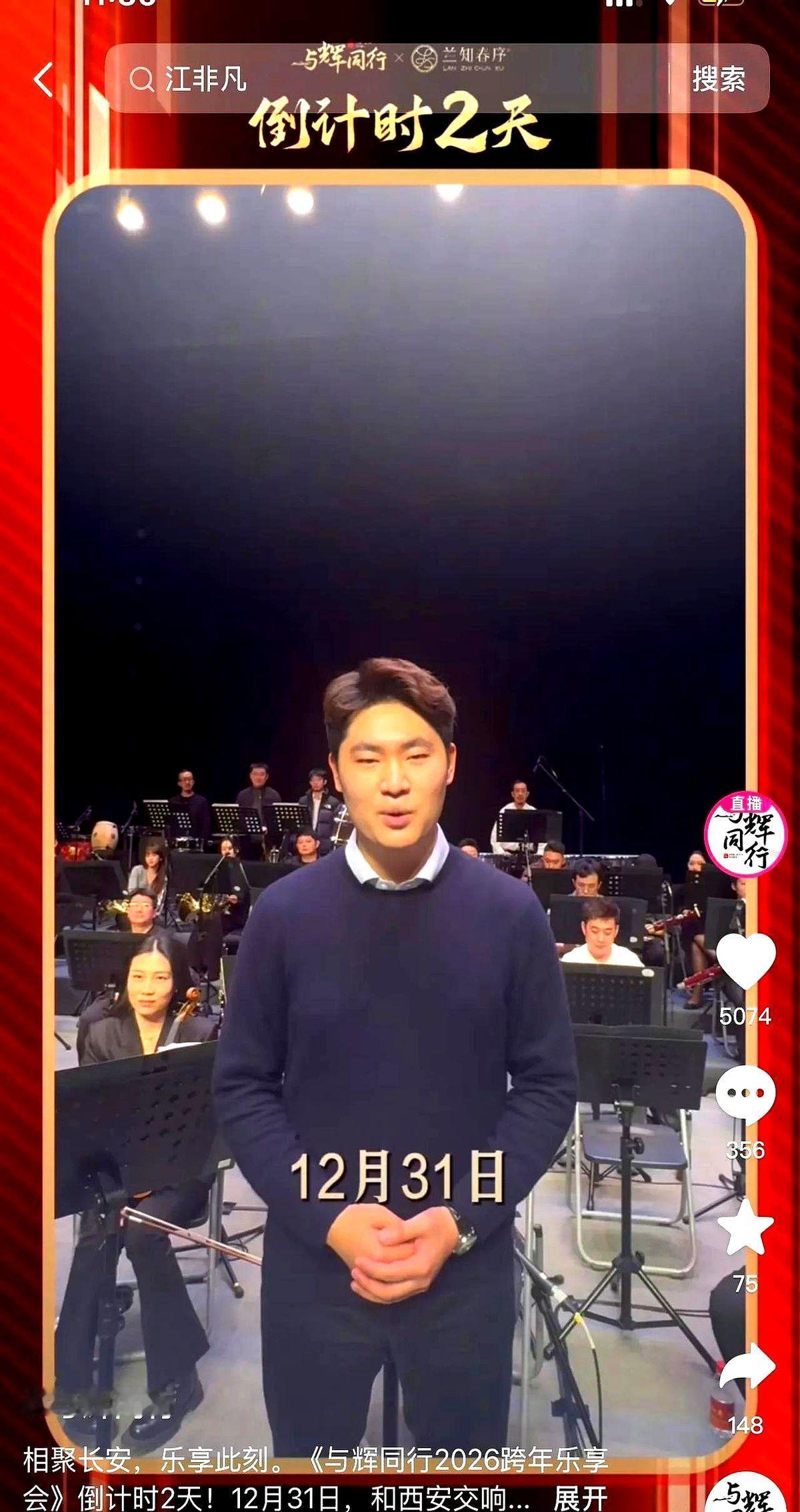董宇辉用帅哥指挥破圈,古典乐这回真能靠脸吃饭? 董宇辉团队在12月30号放出西安交响乐团新指挥江非凡的照片,直接把“与辉同行”的跨年直播预告给整成了大型追星现场。 这操作精准得很。董宇辉这是用自己的流量,给高雅音乐的门槛来了一记“颜值暴击”。这事儿不是临时起意,去年的跨年音乐会直播就有近190万人看,带货效果也猛。今年复制成功经验,还加了个“帅哥”王炸。 核心玩法就是破壁。古典乐太“高冷”,离普通人远。现在用一个大众都能get到的点——帅,先把人吸引过来。 当然,争议也来了。有人觉得这是把艺术当流量密码,有点掉价。也有人说,能让更多人愿意了解交响乐,就是好事一桩。 这事早就获得了陕西省文化和旅游厅的官方批准,乐团也是正经合作。所以关键已经不是营销手法了,而是江非凡到底行不行。西安交响乐团不会随便选个人,选个人来砸自己招牌。 反正31号晚上全程免费直播,到时候看看这位“非凡哥”的指挥棒,是不是跟他长相一样能打。你们觉得呢?