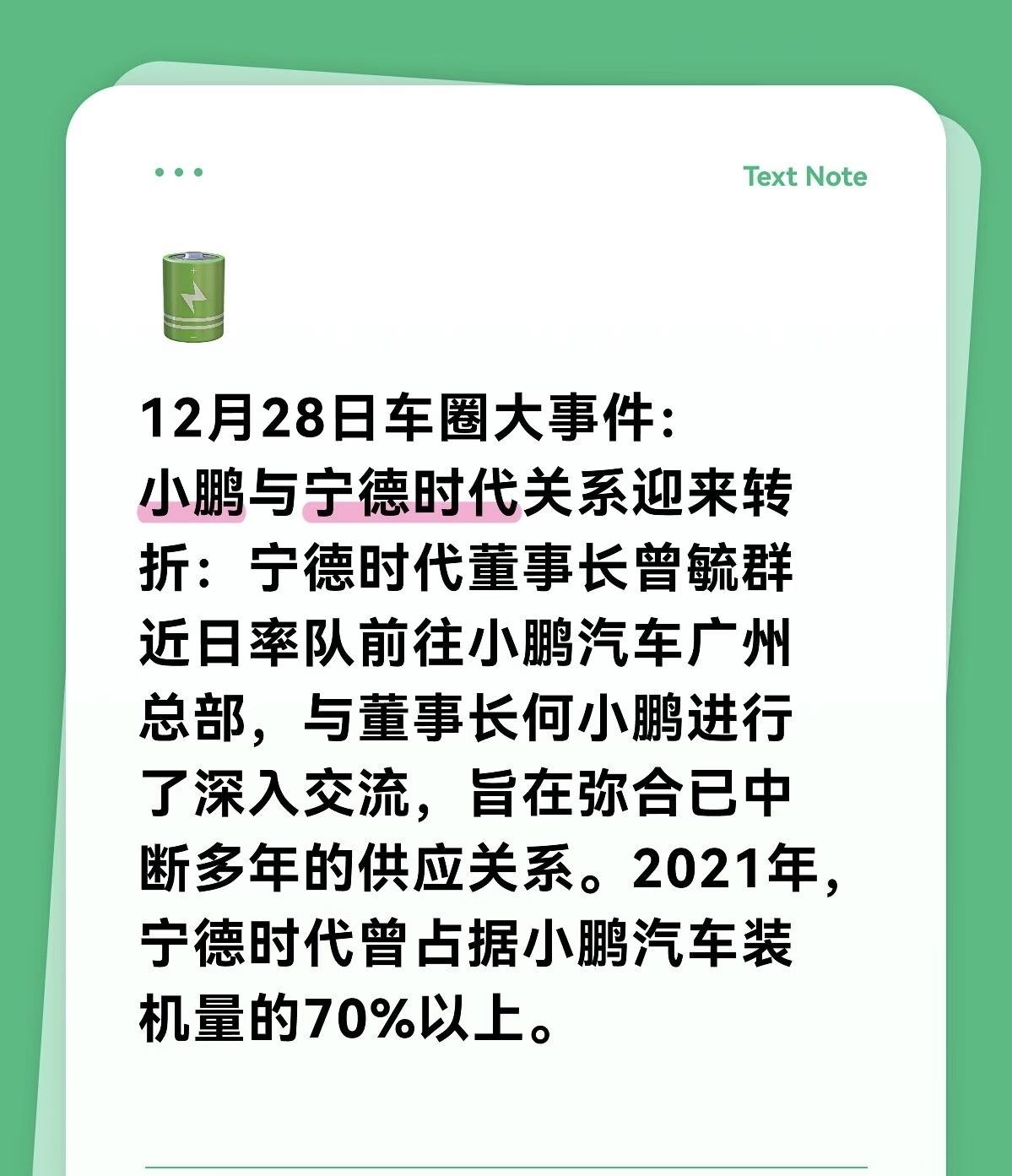 宁德时代为何向小鹏求复合? 很多人看到这个新闻肯定也是一脸懵逼 宁德时代作为动力电池的Top1 怎么这次会如此放低姿态 没关系 我们捋一捋 1、蜜月期 2021前后,小鹏汽车和宁德时代的合作达到了顶峰,小鹏汽车有70%的动力电池供应都来自于宁德时代。 2、冲突期 2021年,小鹏战略车型p5上市,这款被小鹏汽车寄予厚望的重要车型,却遭遇了因动力电池交付不及时,导致了全盘市场营销和节奏被打乱。 3、爆发期 网传小鹏掌门人蹲守宁德时代一周只为催促电池供应,双方高层也因此爆发了激烈争执。 4、调整期 此后的小鹏汽车意识到单一供应链的极度不确定因素,所以后续启动了供应链多元化,宁德时代也从小鹏汽车供应链的唯一选择变成了多选之一。 此后数年,双方的合作等级一降再降。 5、回归期 2025年12月28日,宁德时代掌门人曾毓群亲自带队拜访小鹏汽车寻求合作,这背后的原因是宁德时代市场占有率发生了变化,从2020-2021年的50%市场占有率,下滑到2025年的41.7%,创下近五年新低。 而小鹏作为近年来发展稳定上升的优质客户,对于宁德时代来说就至关重要。