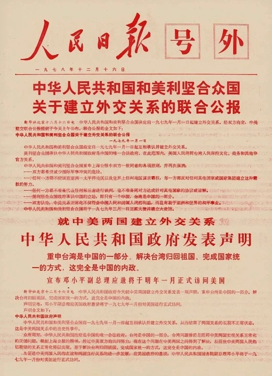 历史上的今天【中美正式建交】47年前的今天,1979年1月1日,《中美建交公报》正式生效,中华人民共和国与美利坚合众国互相承认并建立大使级外交关系。