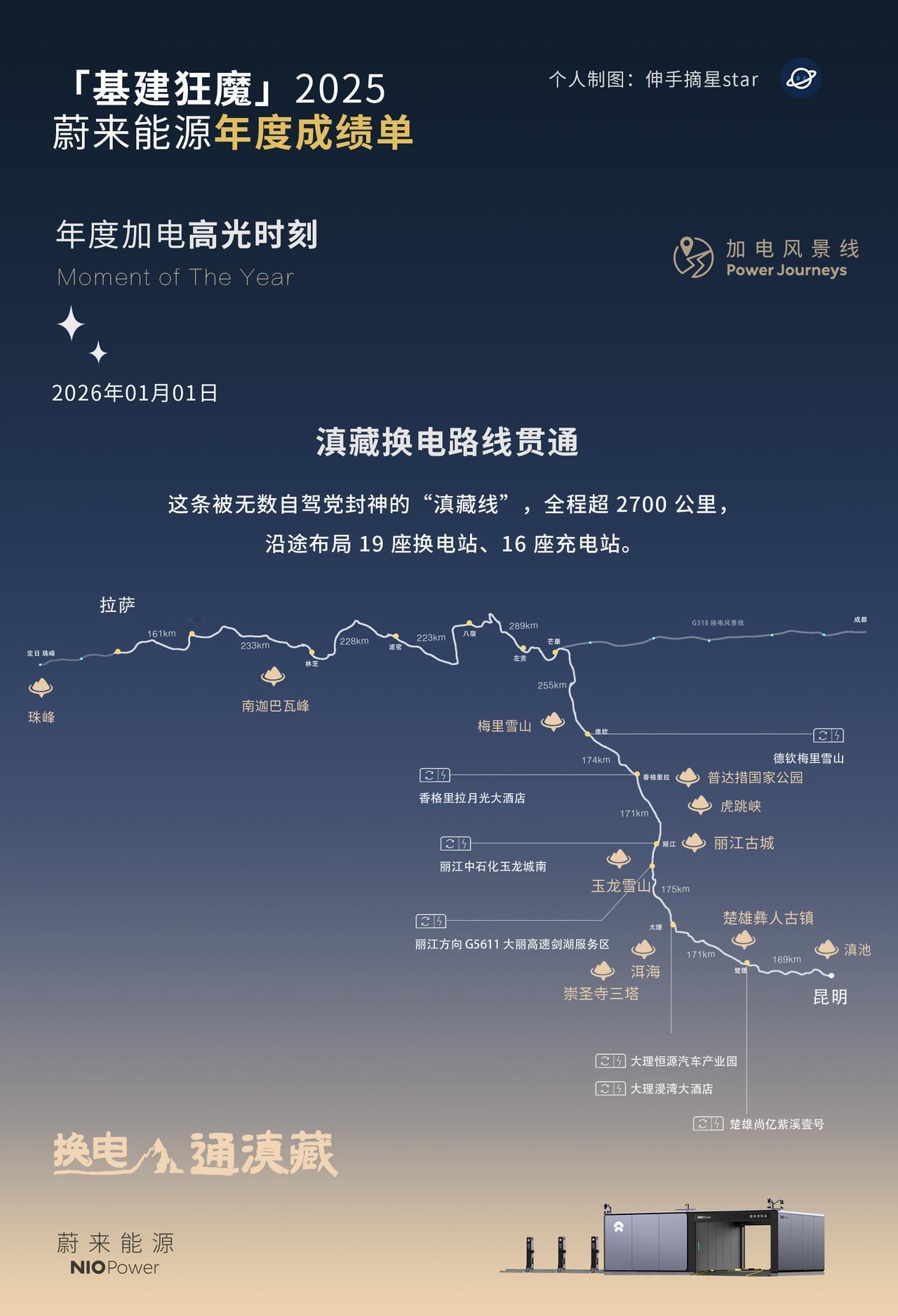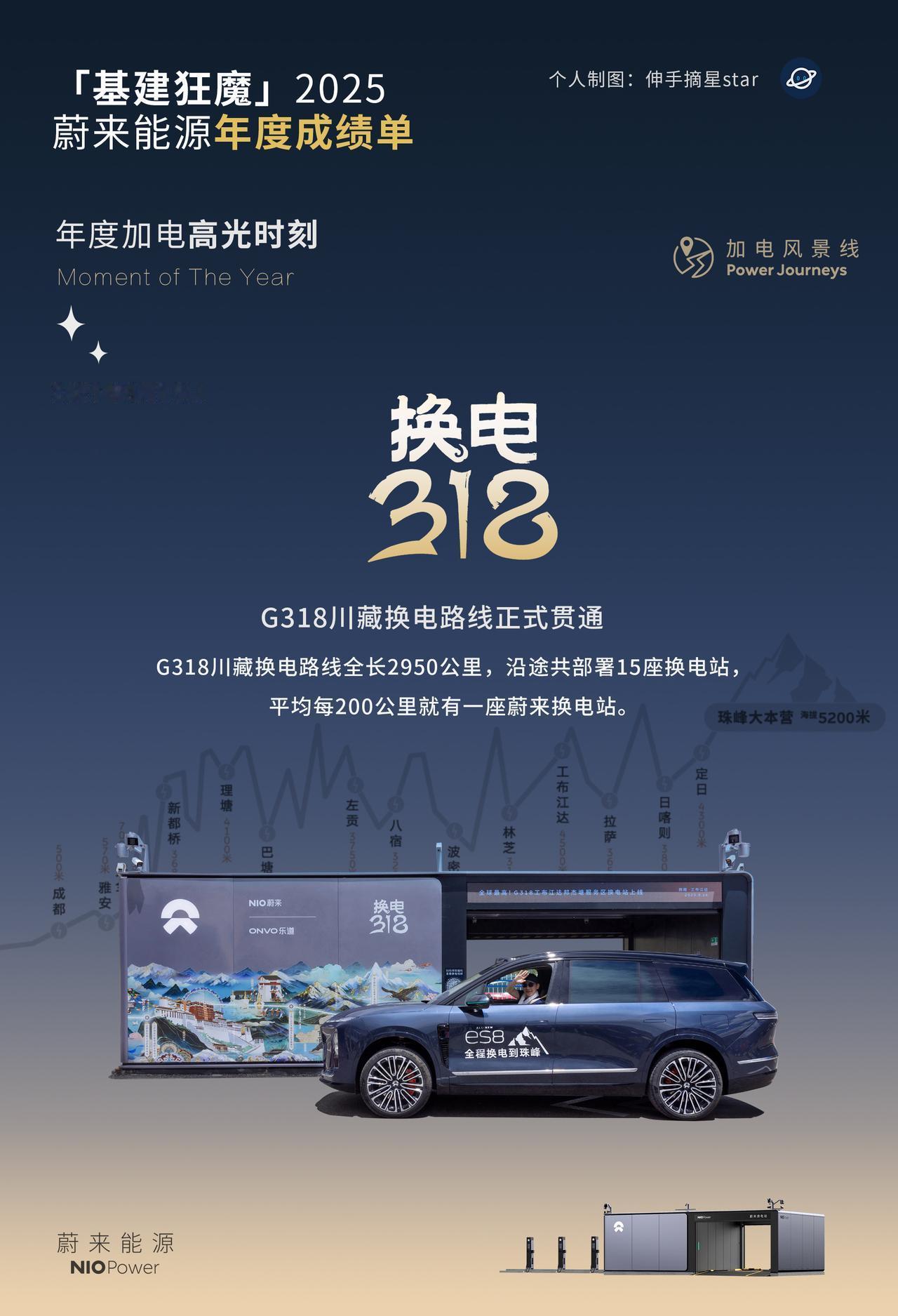 蔚来是车企的“基建狂魔”, 斌哥是铁人CEO!一点都不假! 基建狂魔蔚来,2025年补能网络成绩单! 26年新年第一天, 一早斌哥就上线直播, 滇藏线换电贯通, 德钦梅里雪山换电站上线。 蔚来 蔚来换电网络 基建狂魔年度报告 充电桩
