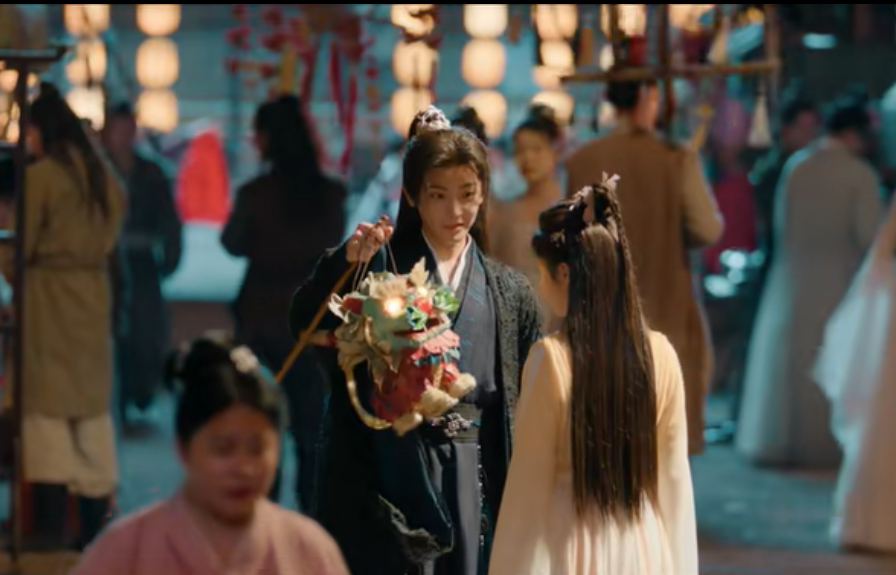 胭脂水粉摊的老板立刻抓住商机,拉红烨来做代言人。红烨秒变“逍遥牌财迷”,与老板谈分成。用赚来的钱,给逍遥买了花灯。