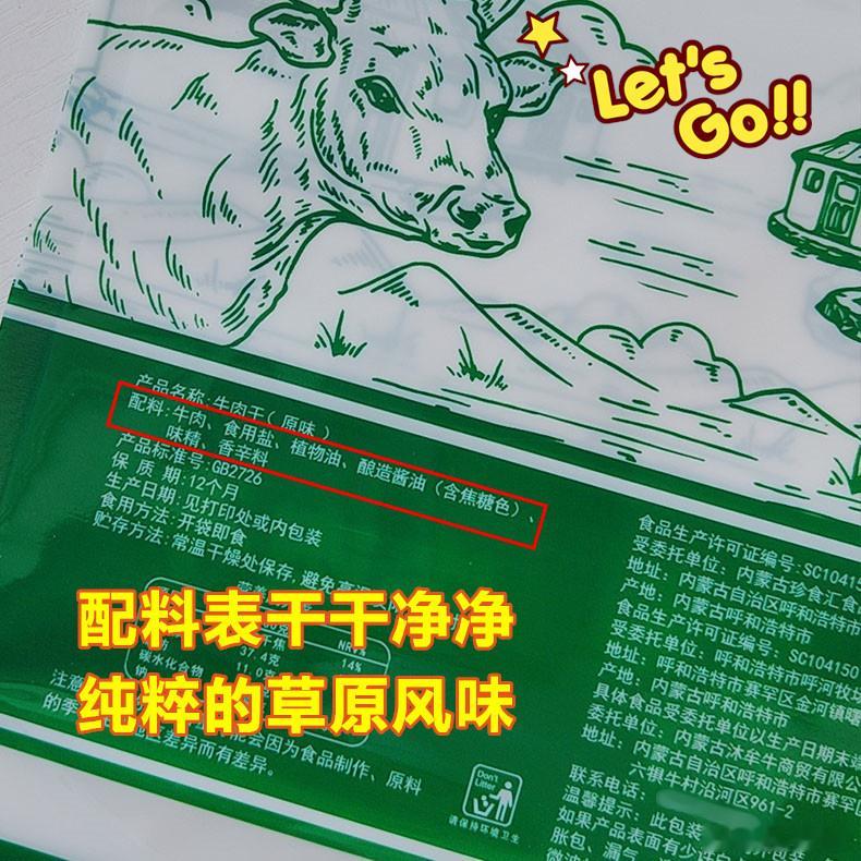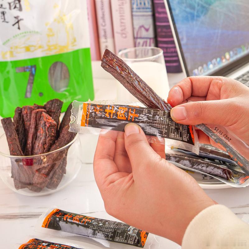 假期旅途好搭档!100%内蒙古原切牛肉干,0添加不油炸,重点是还很好吃。内蒙古手撕牛肉干 100%真牛肉 配料干净(内蒙古发货)这款属于我长期复购款,去年上架后全好评,配料表干净,牛肉的纹理清晰可见,绝对原切牛肉,7成干软硬合适不添加复杂调味,吃的就是牛肉本来的味道,家里老人小孩都可以放心吃,好吃还健康内蒙古锡林浩特大草原,水草丰美,喂养在这自然环境中生长的牛牛,产出的牛后腿肉质饱满紧致有弹性完全天然低脂高蛋白,鲜美可口,营养丰富,不含任何添加剂及防腐剂,也不用担心摄入过多的钠新鲜的牛后腿肉纯手工切条,采用传统工48小时自然风干除水后,拒绝油炸,再恒温炙烤锁住肉香零添加、无色素、无淀粉、无防腐剂、不含糖,三斤鲜牛肉才出一斤牛肉,制作出的牛肉干保留原有的天然牛肉香,对于注重健康的人来说,这个牛肉干简直是很好的选择肉质紧实劲道一点也不柴,丝丝入味,既能尝到牛肉的原汁原味,又能感受到风干的独特口感软硬大小刚刚好,嚼劲十足,越嚼越香,好嚼不费牙。饿了馋了,啃上一根囤货,补充能量,饱腹感满满,减脂期真的一天都离不开牛肉干每根独立真空包装,混合装里面是原味/五香/香辣/孜然四种口味。条件允许下,吃之前可以微波炉加热90秒,味道会更佳。这个好物闭眼入