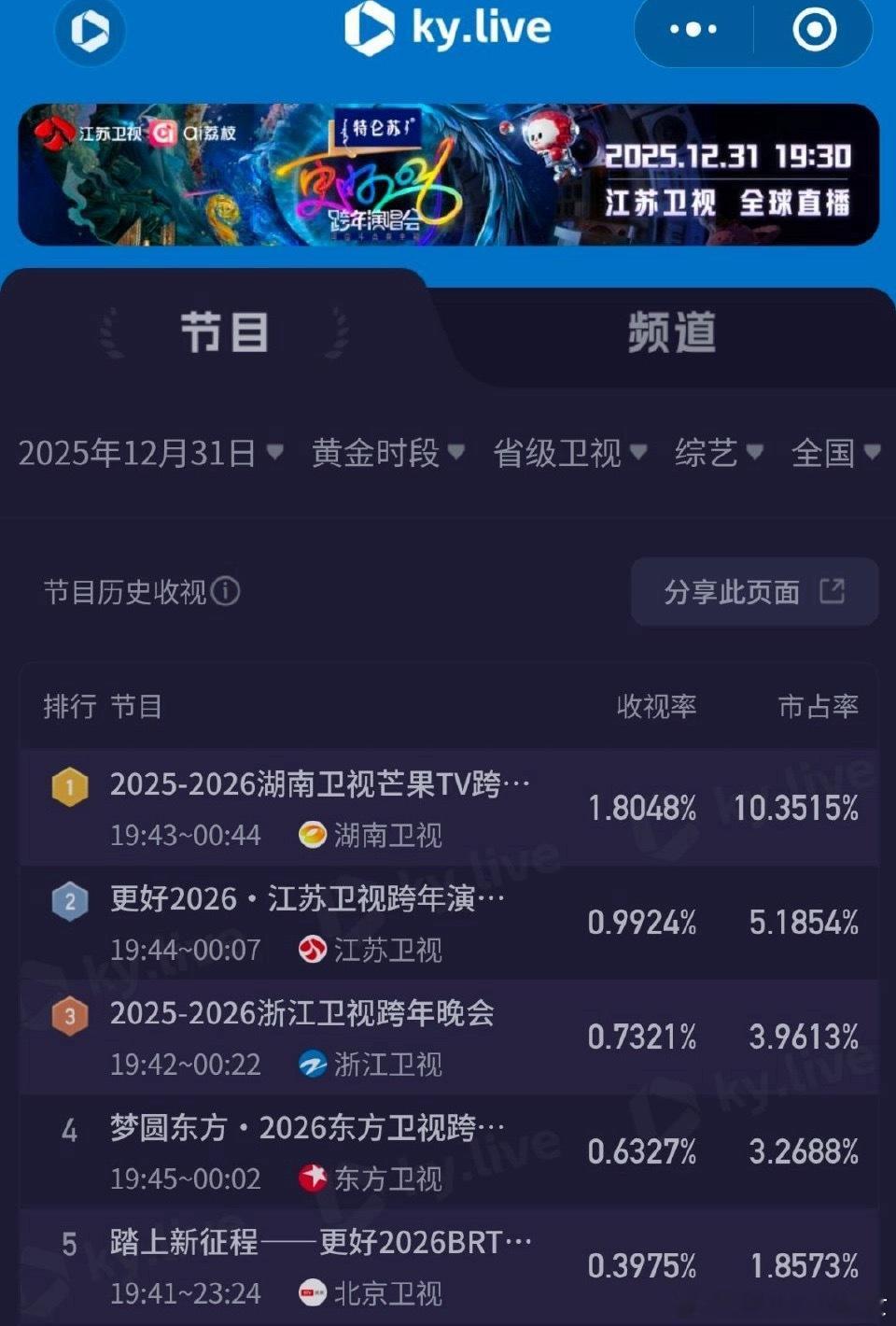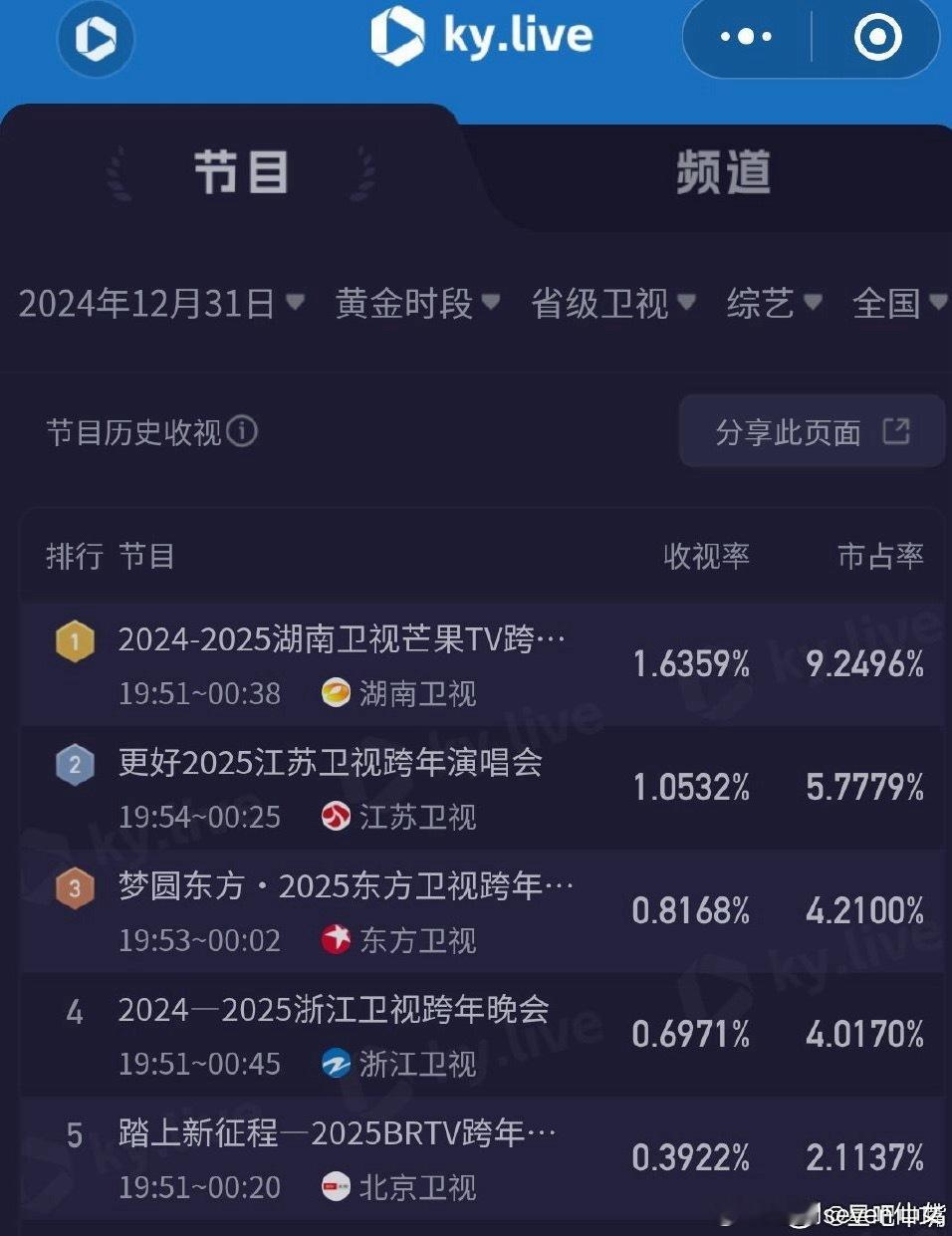 东方卫视跨年去年好歹在卫视里排名第三,今年直接倒数第二,四大卫视倒一