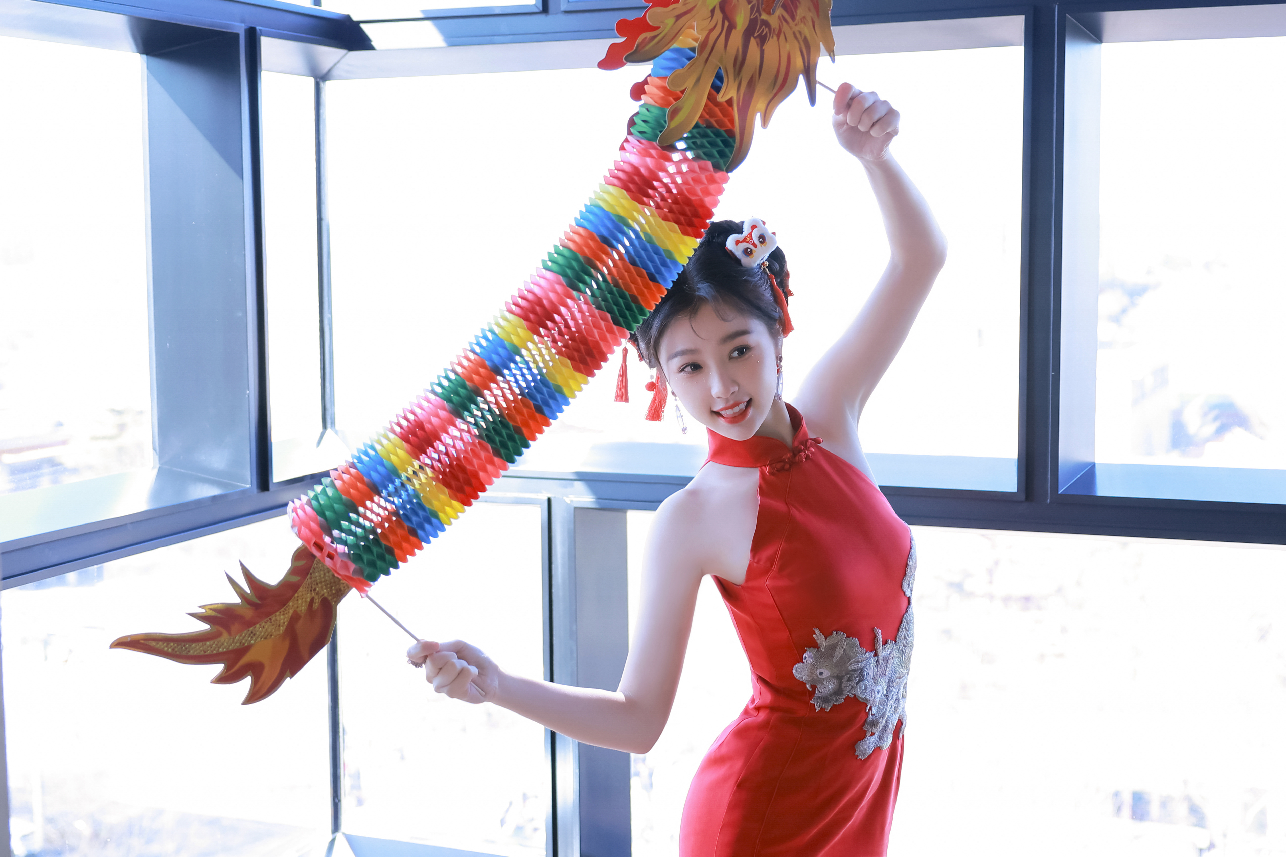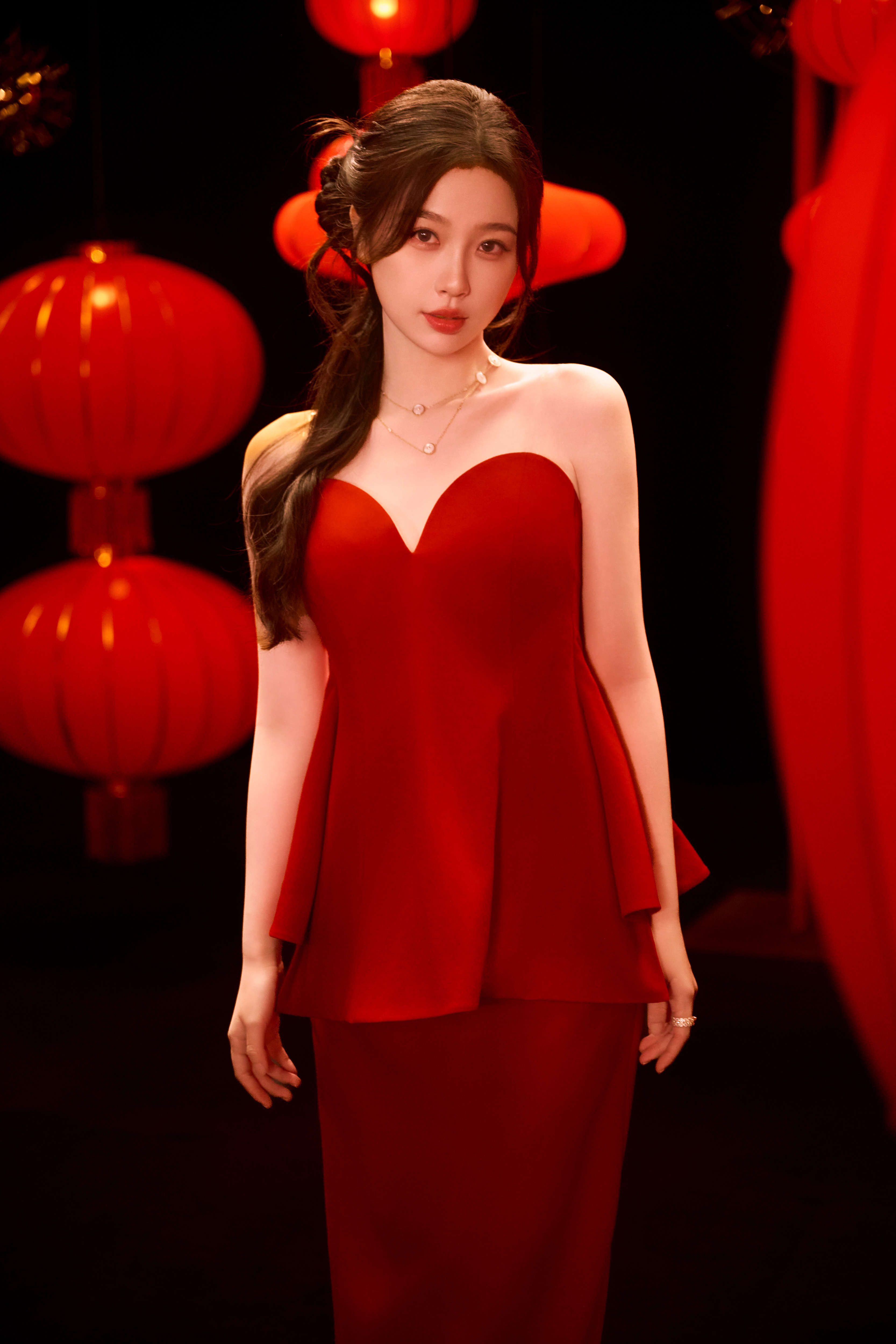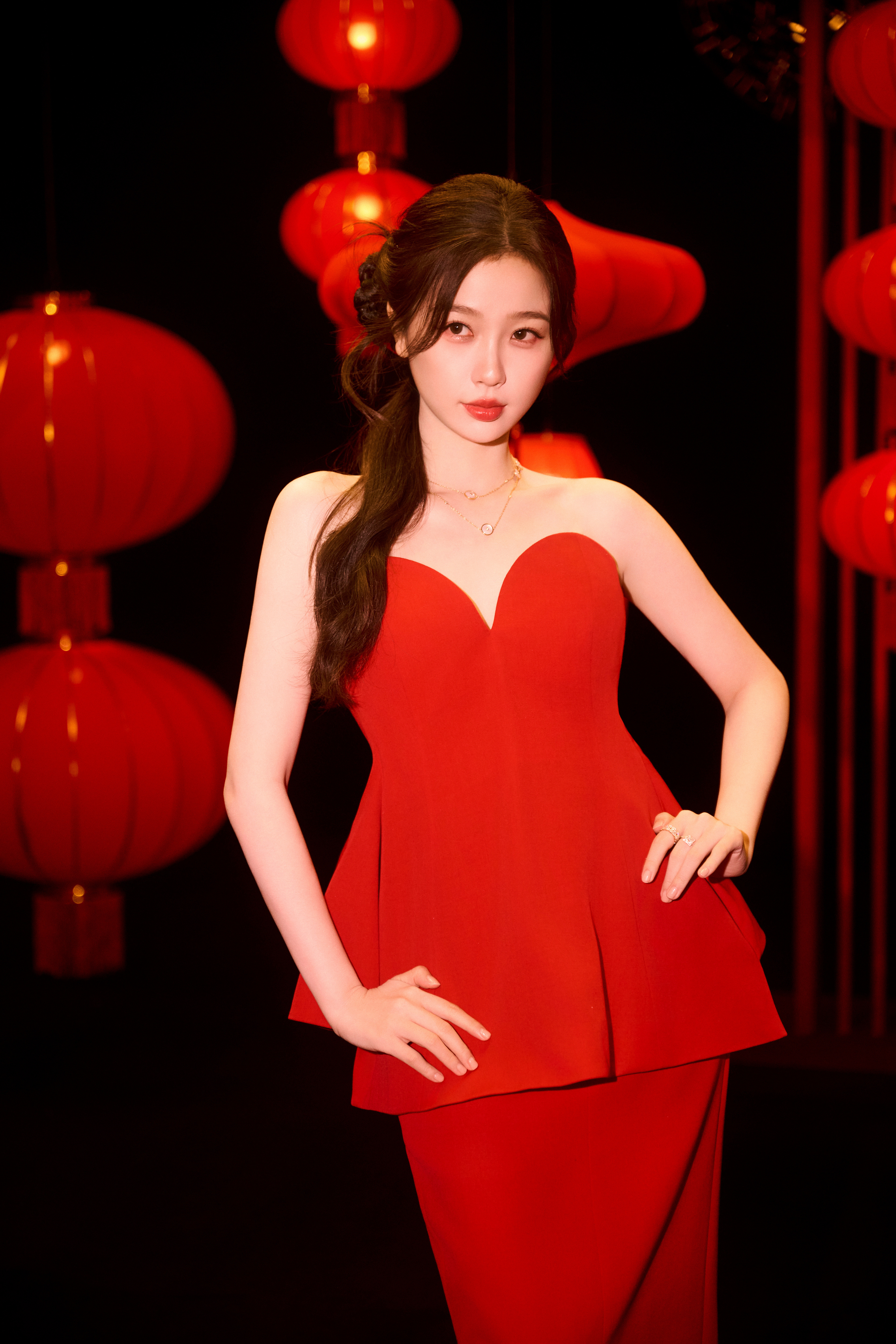 杨紫新年红裙