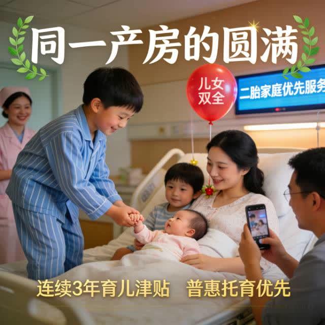 同一产房喜提儿女双全!二胎家庭的圆满里,藏着生育友好的温暖底色 产房里一声软糯啼哭落下,老大踮着脚尖凑到婴儿床前,小心翼翼牵住妹妹的小手——这一幕,让襄阳某妇幼保健院的医护人员都忍不住嘴角上扬。张女士一家的圆梦时刻太戳人:头胎在这间产房生下儿子,时隔三年,又在这里迎来女儿,“同一间房,凑齐一个‘好’字,简直像命中注定的圆满”。 这份“刚刚好”的幸福,绝非偶然,而是医疗服务与生育政策托举的结果。如今各地医院针对二胎家庭推出的暖心举措,早已渗透到分娩全流程:专属助产士全程跟进、二胎妈妈优先安排家庭化产房、产后康复套餐针对性升级,像张女士这样的产妇,从待产到分娩都有熟悉的医护团队陪伴,大大缓解了二胎生育的焦虑。不仅如此,育儿补贴的加码更让家庭底气十足——连续3年的育儿津贴、普惠托育名额优先供给二胎家庭、产检项目费用减免,这些实实在在的红利,让“儿女双全”不再是压力满满的愿望。 我的观点是:儿女双全是很多家庭的美好期盼,但真正的圆满,从来不止于“一儿一女”的组合,更在于生育过程的安心、养育阶段的舒心。就像同事小李,二胎女儿出生后,社区工作人员主动上门讲解补贴申领流程,托育机构预留了学位,老大的课后托管也无缝衔接,“不用愁钱、不用愁人带娃,这份踏实,比凑成好字更珍贵”。反观有些家庭,因生育成本高、托育资源不足,即便有二胎意愿也只能搁置,这也印证了生育友好环境的重要性。 从单独二孩到三孩政策落地,社会对二胎家庭的关注早已从“鼓励生育”转向“支持养育”。医院的人性化服务、政策的精准帮扶、社区的贴心配套,共同织成了一张守护家庭幸福的网。每一个儿女双全的欢笑瞬间,都是政策温度与社会善意的生动注脚。 你身边有没有这样圆满的二胎家庭?你觉得哪些育儿政策最能帮二胎家庭减负?欢迎在评论区分享~