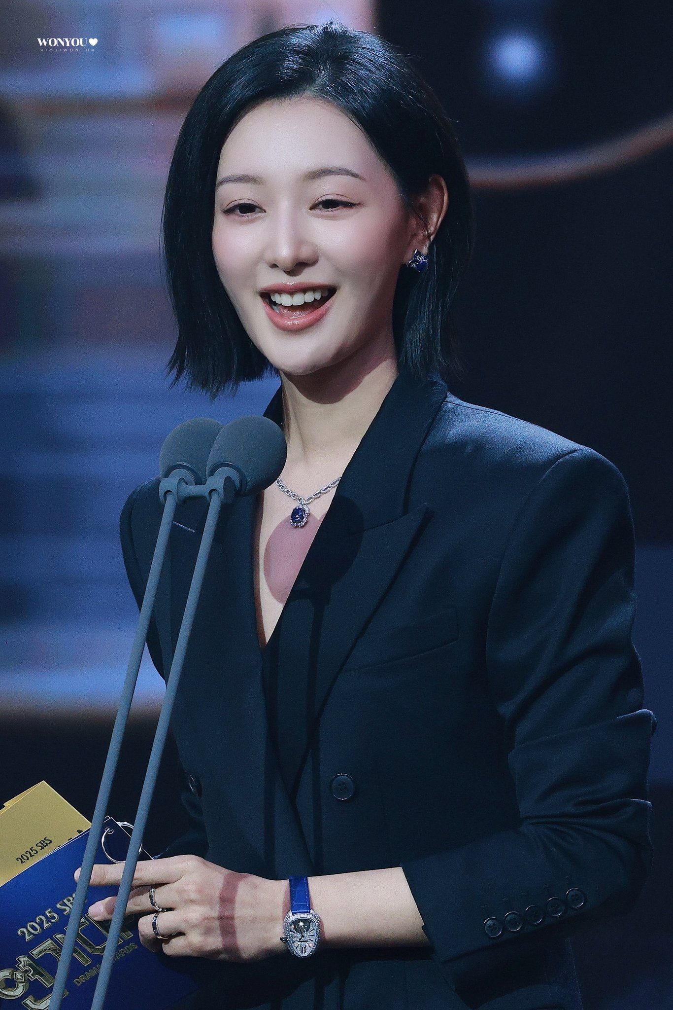 昨日出席2025 SBS演技大赏的金智媛,为新剧《Doctor X》角色剪了短发,身穿西装套装干练利落帅气,搭配以蓝宝石为主石的BVLGARI珠宝及同色系腕表表带的BVLGARI Serpenti 系列钻石镶嵌的腕表,低调又不失奢华,细节处处彰显优雅。时尚灵感解读