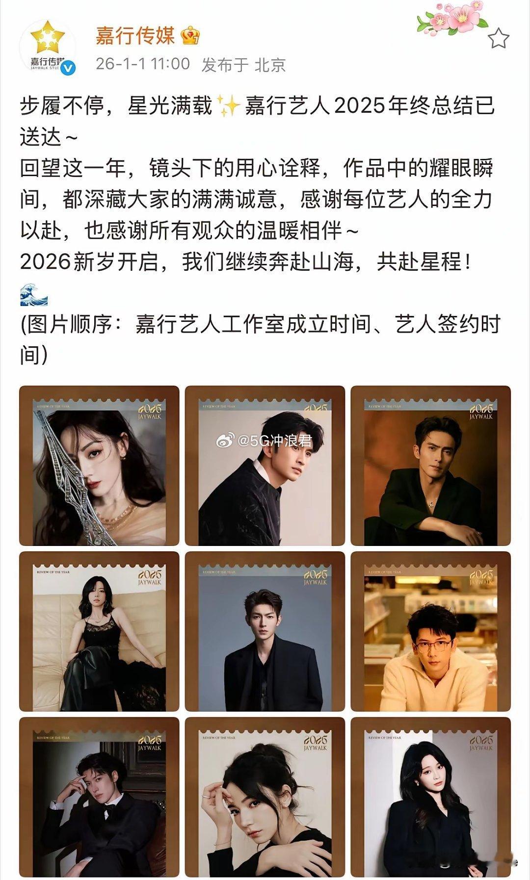 嘉行旗下2026所有艺人!一姐迪丽热巴,一哥张云龙,一句“图片排序,嘉行艺人工作