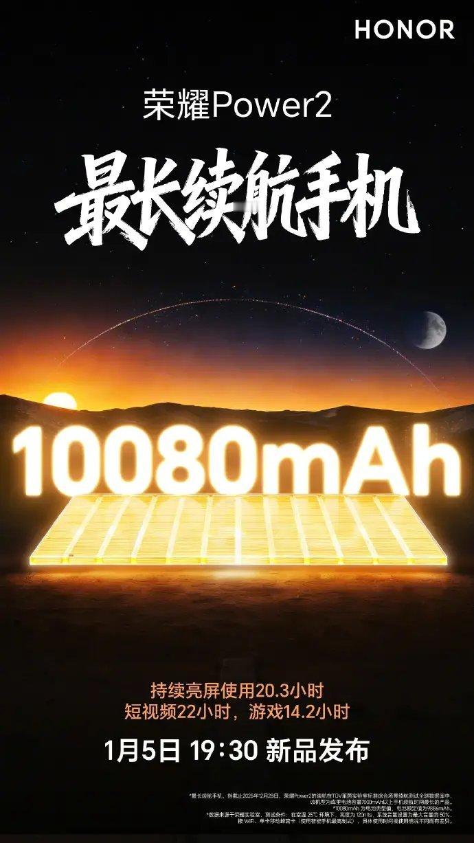 【荣耀Power2官宣首发搭载天玑8500 Elite,中端手机性能迎越级时刻荣耀正式官宣荣耀 Power2 行业首发全新的次旗舰芯片天玑 8500 Elite,用实力做到了领先同档一代的硬核性能,更同步搭载了 IP68&IP69&IP69K 满级防尘防水认证,不仅为轻户外场景提供可靠保护,更拥有了行业最高防护标准。基于这两大核心配置,可谓奠定了其“户外轻旗舰”的坚实底座。作为荣耀 2026 年的开篇之作,荣耀 Power2 显然旨在打破中端机市场长期存在的“性能妥协”与“缩减配置”怪圈,强势推动旗舰体验向大众市场的下放与普及。性能越级:天玑 8500 Elite 打破够用主义长期以来,中端手机市场往往陷于“够用即可”的思维定势,导致用户在进行高负载游戏或多任务处理时,常面临发热、卡顿的尴尬。荣耀 Power2 此次在性能维度的发力,显然在打破这一行业潜规则。新机将行业首发天玑 8500 Elite 芯片,其旗舰级全大核配置,性能远超同档位产品普遍搭载的天玑 7300、天玑 7400 这类处理器,成为中档位的越级性能标杆。无论是多应用并行的复杂任务场景,还是高负载的大型游戏,都能做到流畅运行、毫无压力。跑分数据更是直观印证其强悍实力。根据官方信息,安兔兔跑分更是突破 240 万大关。这一成绩不仅稳稳跻身中端芯片第一梯队,更能对标部分高通骁龙 8 系列旗舰级产品,真正实现大幅超越同档、稳坐同档性能头把交椅。在实际体验中,天玑 8500 Elite 的越级性能优势转化为持久稳定的高清游戏帧率,能够实现高清画质下《王者荣耀》120 帧满帧流畅稳跑,且机身保持冷静运行。这对于追求极致游戏体验的中端机用户而言,无疑是一次跨越式的体验升级。事实上,性能提升并非全部体验,散热系统的效能直接决定了高性能能否持久释放。荣耀 Power2 还配备了冰封液冷散热系统,拥有超大散热底盘。其采用了第五代石墨技术,石墨性能大幅度提升,总散热面积超过 40000mm²。此外,搭配的 3D 不锈钢双泵驱动 VC,散热体积较常规提升 20%,配合镭雕丝网亲水特性,有效降低芯片温度。除了远超同档的性能外,荣耀 Power2 还将搭载第四代青海湖电池,具备行业最大 10080mAh 电池容量。对于日益增长的户外工作、长途旅行以及高强度移动办公需求而言,荣耀 Power2 破万级续航,意味着用户将真正告别移动电源的束缚。根据官方信息,荣耀 Power2 可持续亮屏使用 20.3 小时,短视频 22 小时,游戏 14.2 小时。荣耀 Power2 的另一大亮点就是搭载了荣耀 Magic8 系列旗舰同款的鸿燕六翼天线系统,并配合荣耀自研射频增强芯片 C1+ 及多源融合定位引擎,为用户带来更流畅的通信体验与更精准的定位服务。在耐用性方面,荣耀 Power2 还使出了“满级防水”的杀手锏,其支持 IP68&IP69&IP69K 满级防尘防水认证。可以承受 100℃ 超高温防水、任意种类防水、30 天 1 米深超时长防水无忧等,这极大地拓展了手机的使用场景,解决了户外用户在复杂环境下的用机痛点,当之无愧的满级防水王。