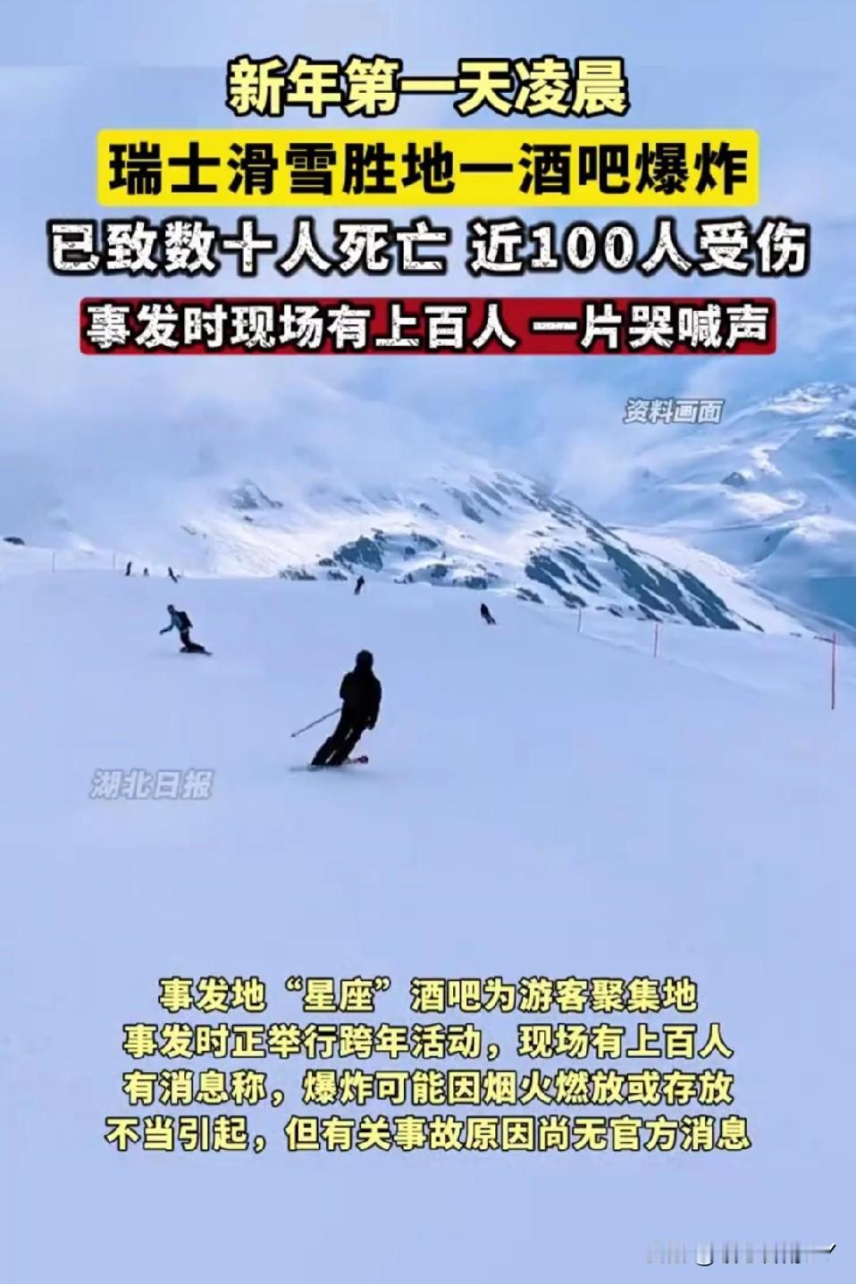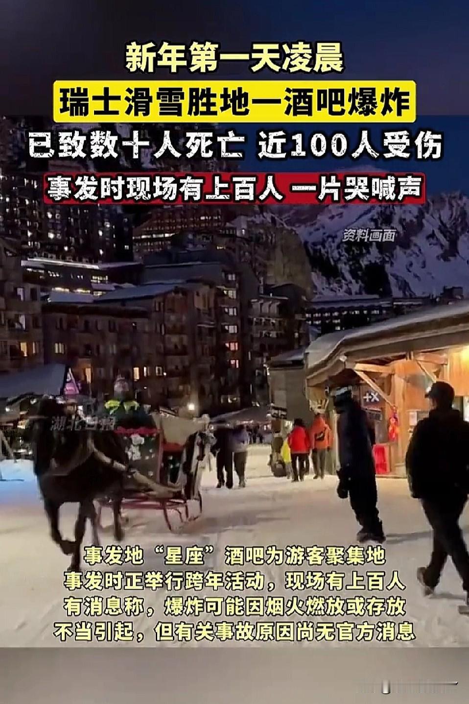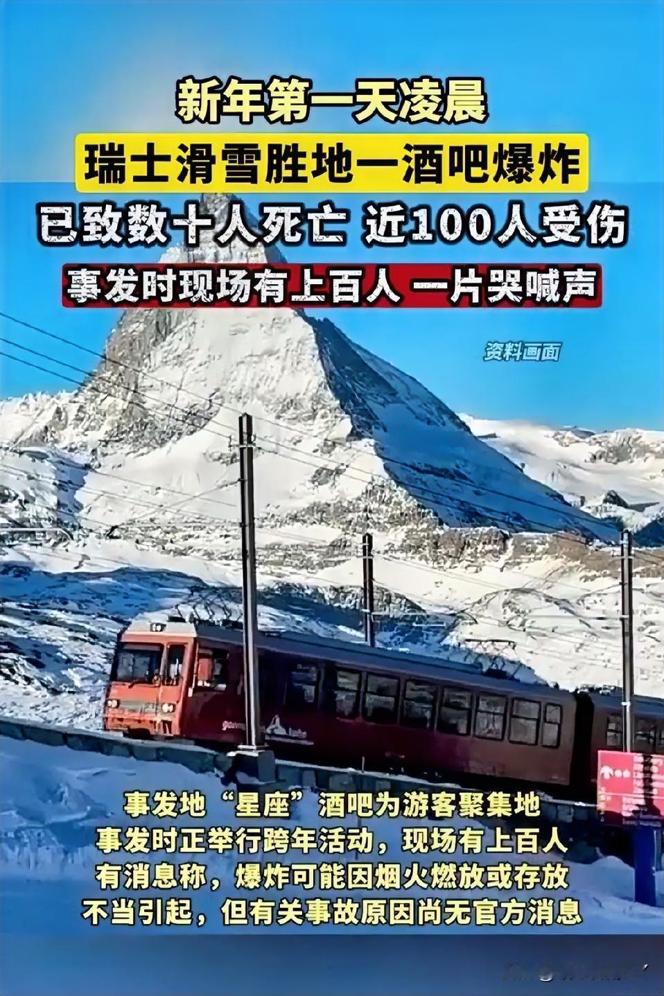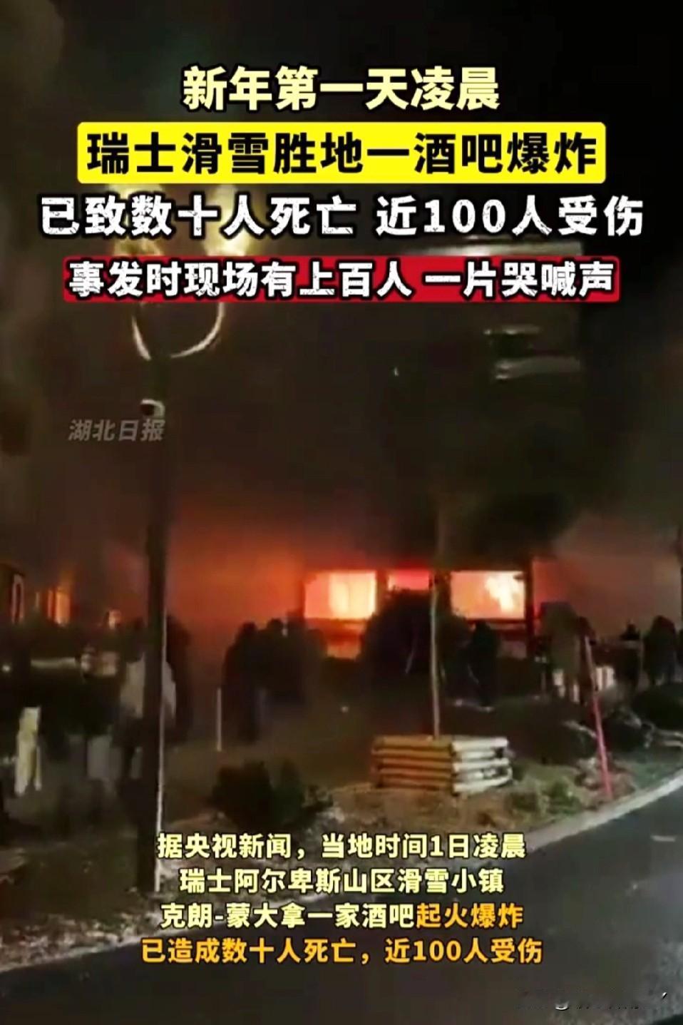 近百伤据权威媒体报道:2026年的第1缕晨光还未照亮阿尔卑斯山区,瑞士滑雪圣地克朗 - 蒙大拿镇的“星座”酒吧却突发爆炸并燃起大火,这场事故太惨烈了。 当地时间1月1日凌晨1时30分,上百名游客的跨年狂欢,刹那间变成了生死考验。 火焰从门窗喷涌而出,浓烟堵住了狭窄的逃生通道,人们只能砸窗逃生,玻璃碎片四处飞溅,尖叫声淹没了先前的欢歌。 从最初官方通报的10人遇难,到最后陆续警方确认约40人丧生、115人伤者带着烧伤的剧痛被直升机转运,多数伤者为严重烧伤,当地重症监护室早已不堪重负。10架直升机、40辆救护车连夜运送伤员,多国公民卷入其中,所幸暂无中国公民伤亡报告。 警方已排除恐袭,调查方向指向室内烟花燃放不当或燃气泄漏,而老旧建筑、超员聚集、安全检查缺失等多重漏洞,才是这场悲剧的根源。 瑞士联邦宫降半旗五天,联邦主席取消新年致辞,这是一场该国史上最严重的安全事故,给所有节庆活动敲响了警钟。 跨年本是辞旧迎新,却因疏忽让四十条生命永远停在旧年。愿逝者安息、伤者早日康复,也愿每一场热闹的活动都能守住安全底线。 你在公共场所会主动留意逃生通道吗? 瑞士