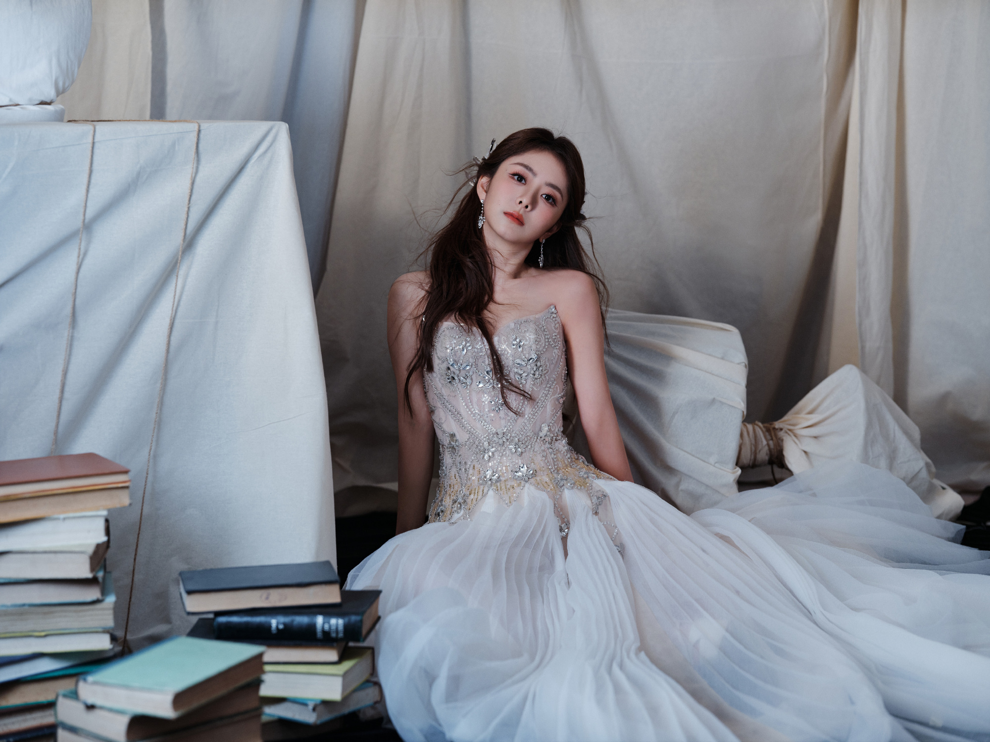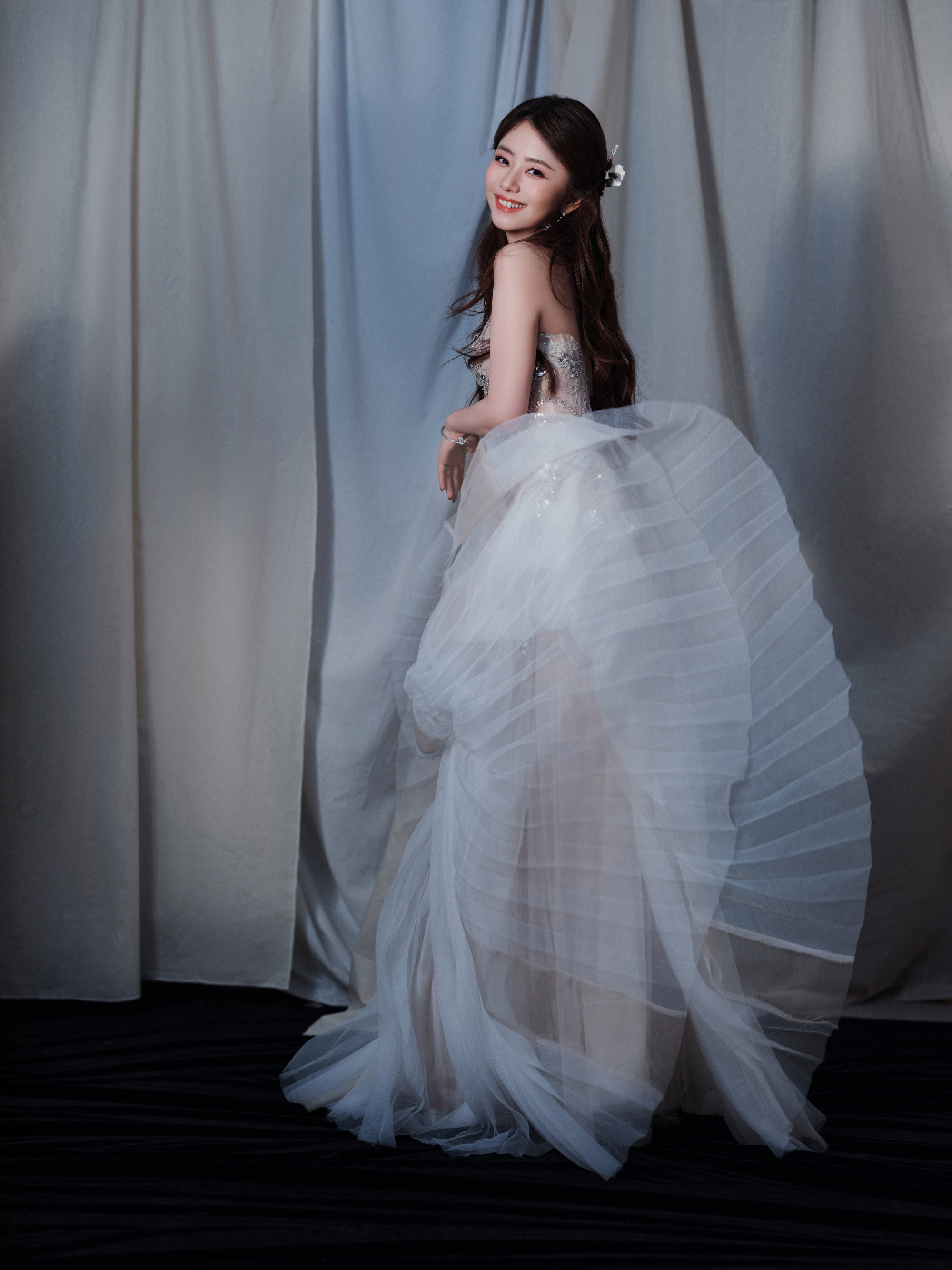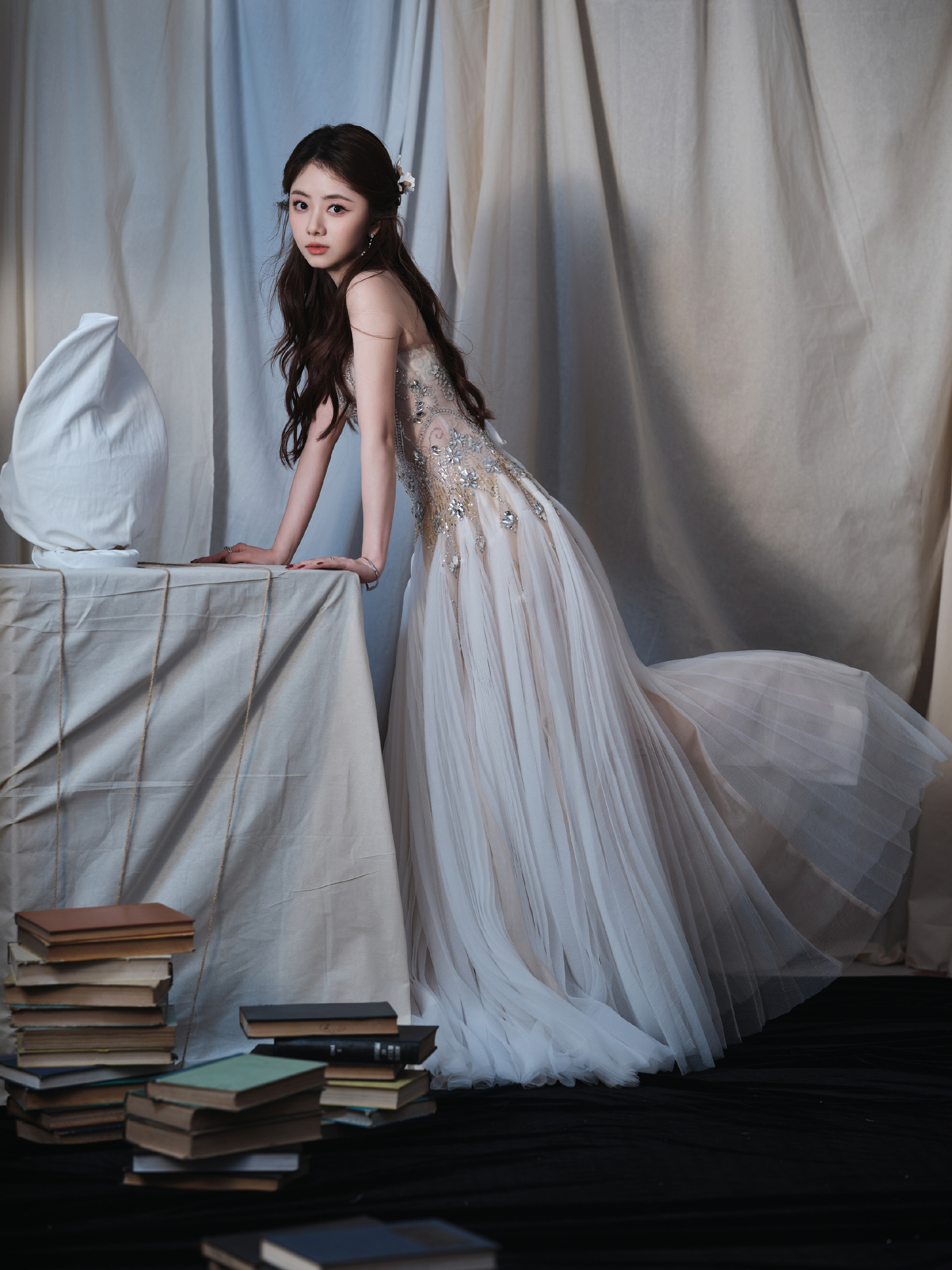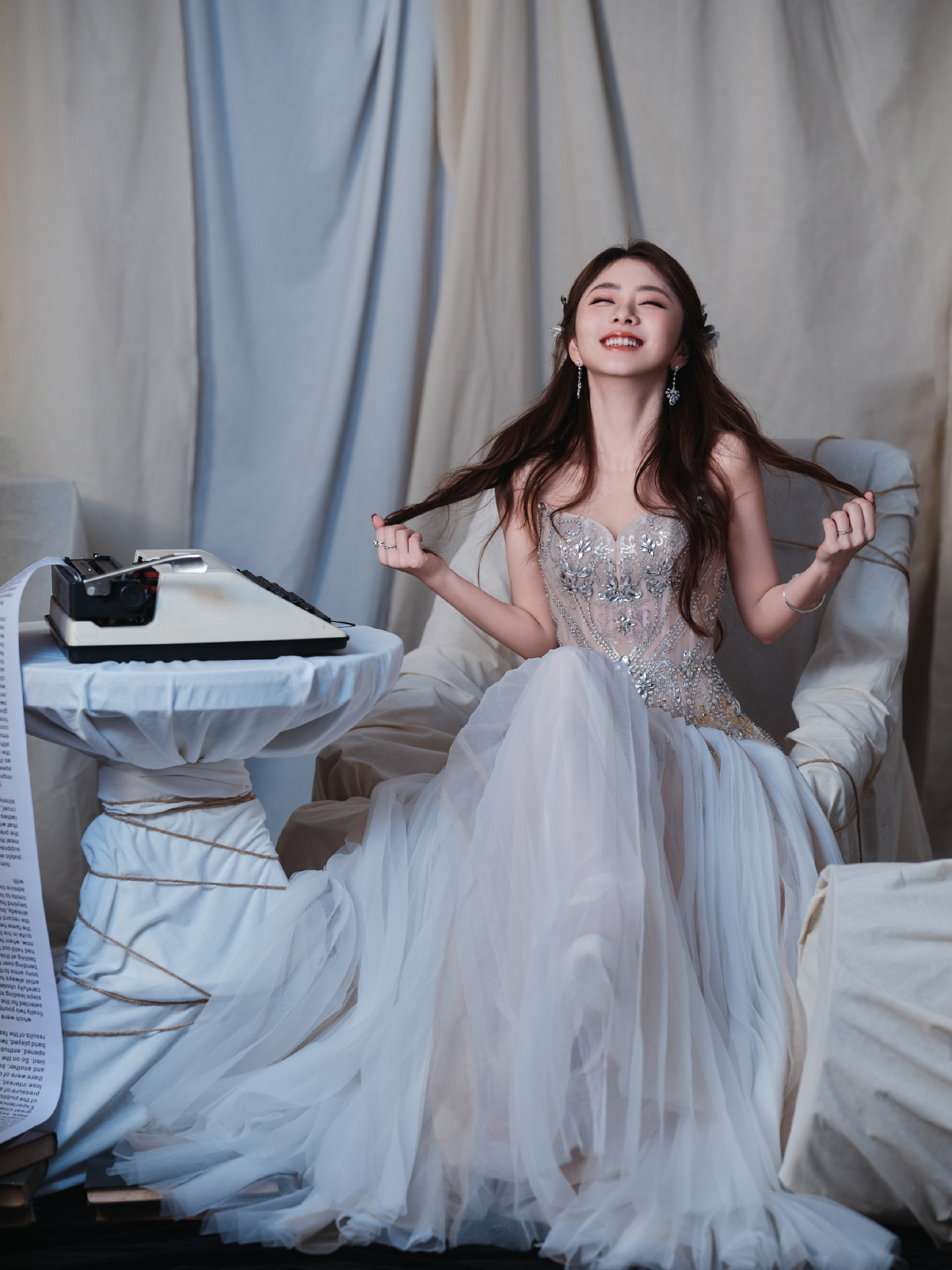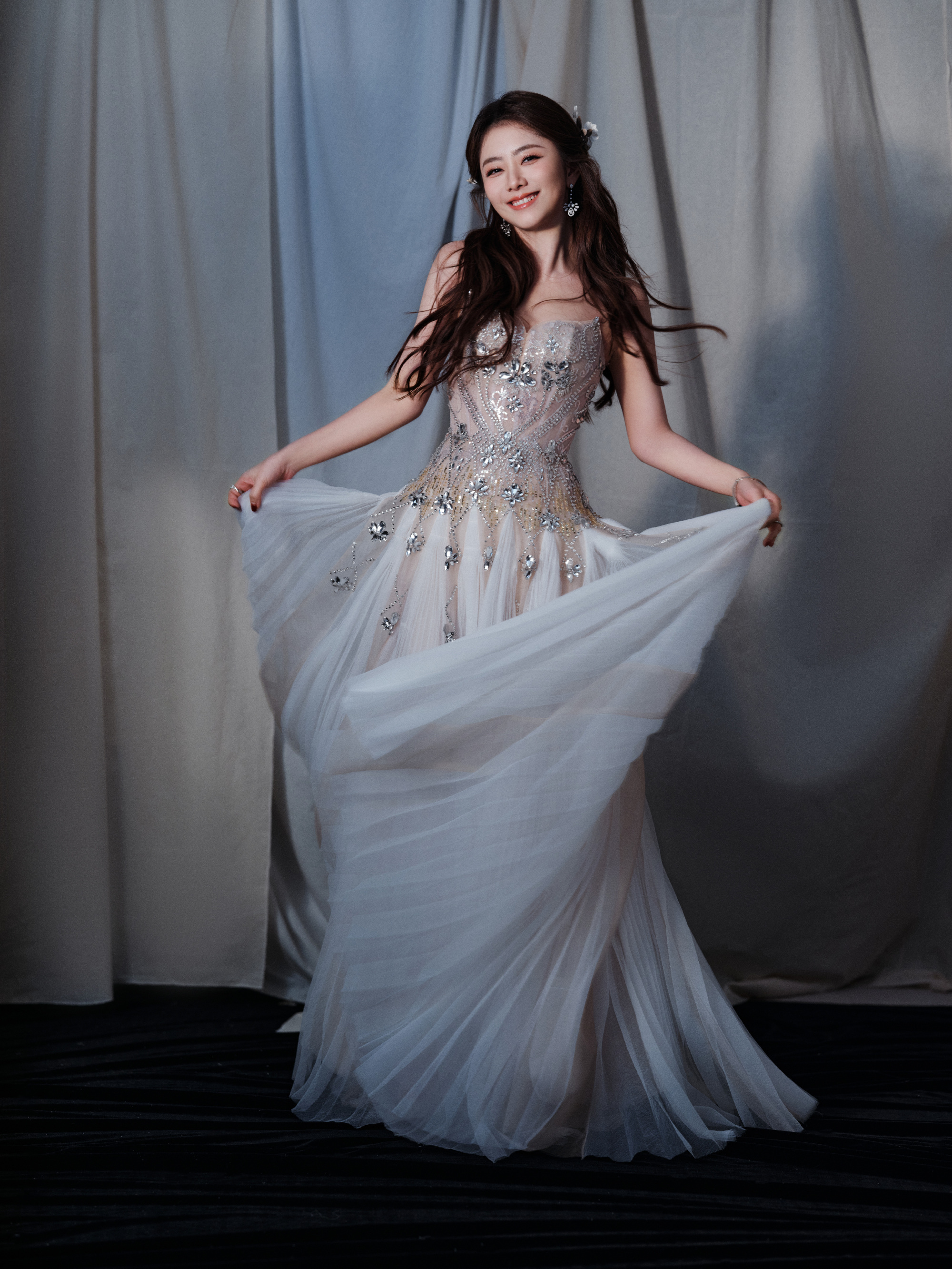谭松韵,一身轻盈纱裙,少女气息满满,甜笑可人。谭松韵