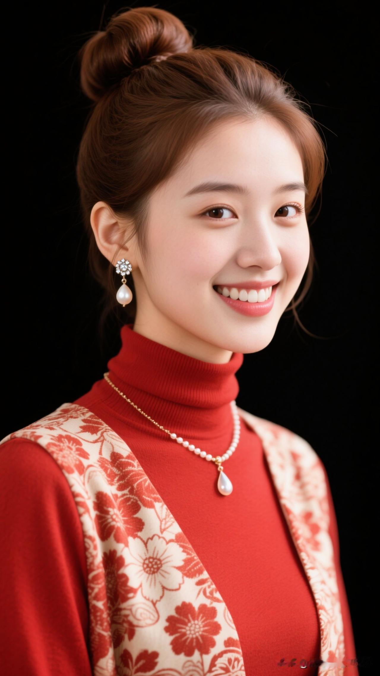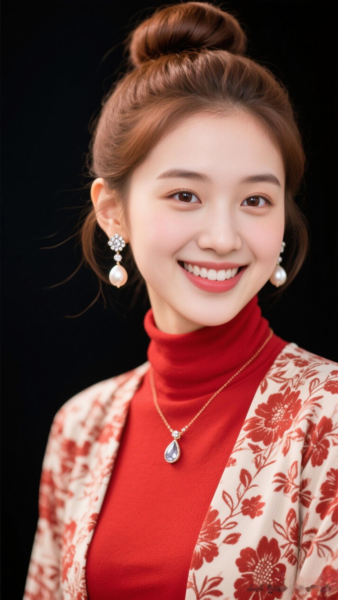 🌺 春阳吻过织纹肌理,红调裹住烂漫的韵,珍珠在耳畔颈间跳成星,她站在那里,就是热烈与温柔的共生画。春天高级感配色 春夏配色 春日绣花图 春日图案 春之瑾色系 春彩色系 春语毛衣 锦织春