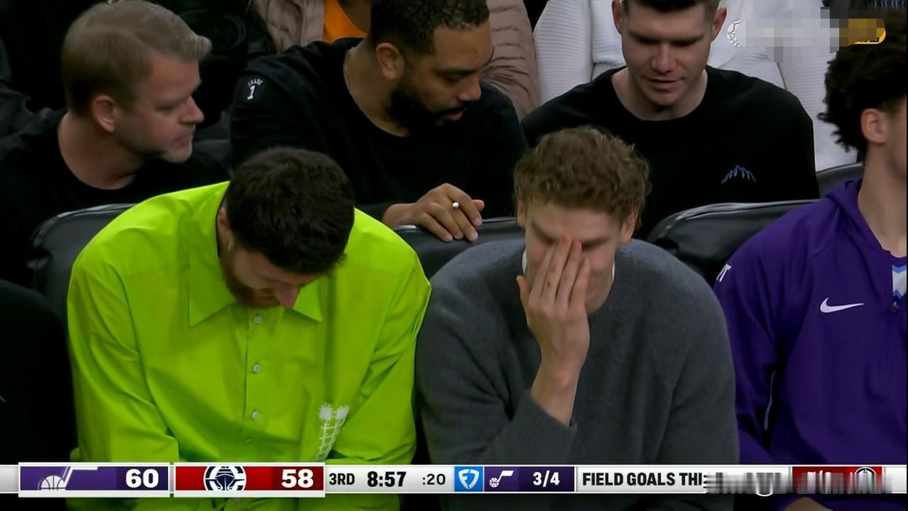 快船超级球星哈登真是可怜了,他惨遭对手的疯狂嘲笑!在今天快船主场迎战爵士的比赛中,当时比赛进行到了第三节的九分钟,哈登在三分线外投出了一记非常离谱的三不沾,球直接出了底线。当转播镜头给到哈登时,只见他满脸尴尬的站在场上,就在这个时候爵士球星马尔卡宁和老将努尔基奇在替补席上疯狂的嘲笑哈登,两人一个捂着嘴巴笑、一个低着头笑。