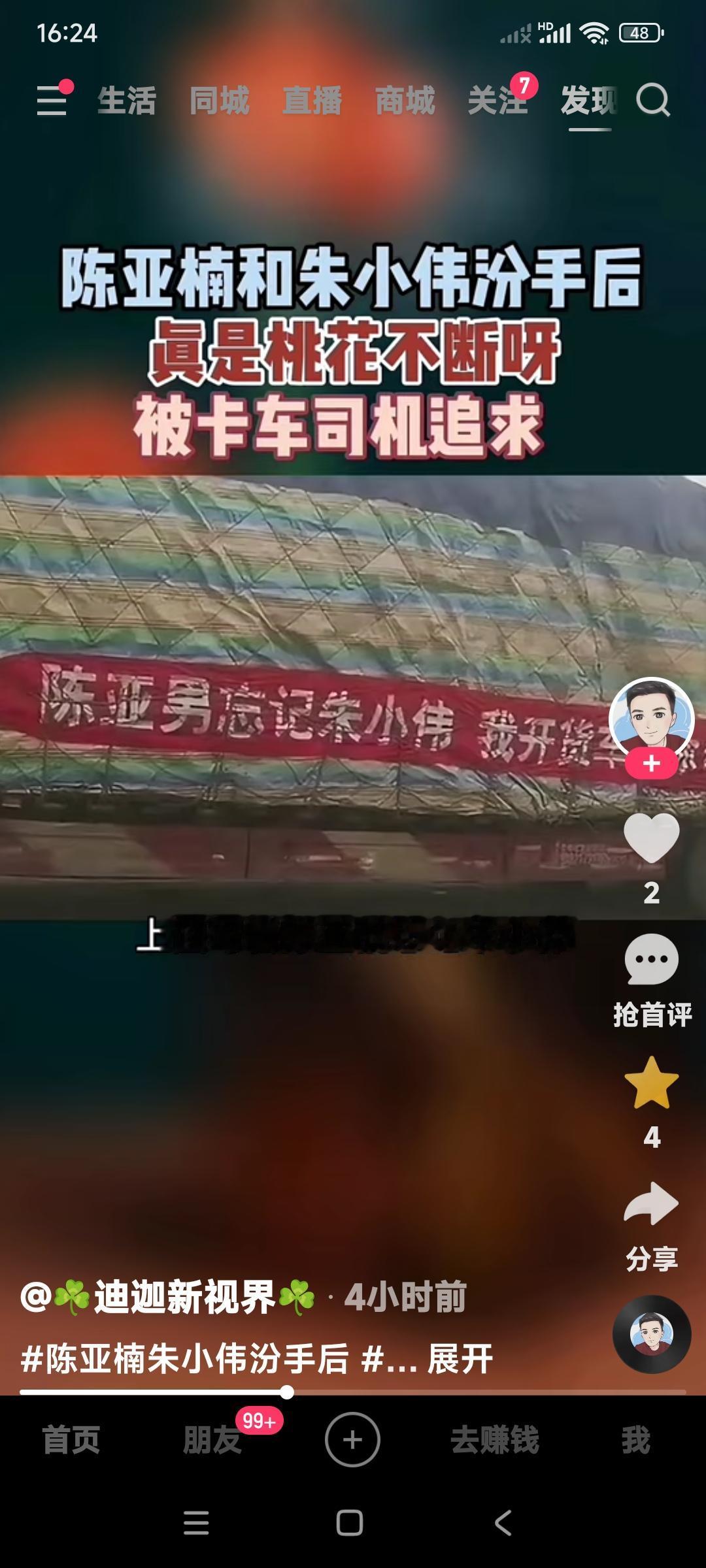 陈亚楠现在被一帮人炒作的又成了大网红。 并且有人向她求婚。 通过这一番折腾,陈亚楠现在还走了桃花运了。 大货车司机在大货车上挂大横幅,追求陈亚楠。 这大货车司机看样是真心在追求陈亚男。 还有一广州男子,愿花300亿娶陈亚楠不知道是真是假。 如果是真,那陈亚楠还真就如愿以偿好事一桩。