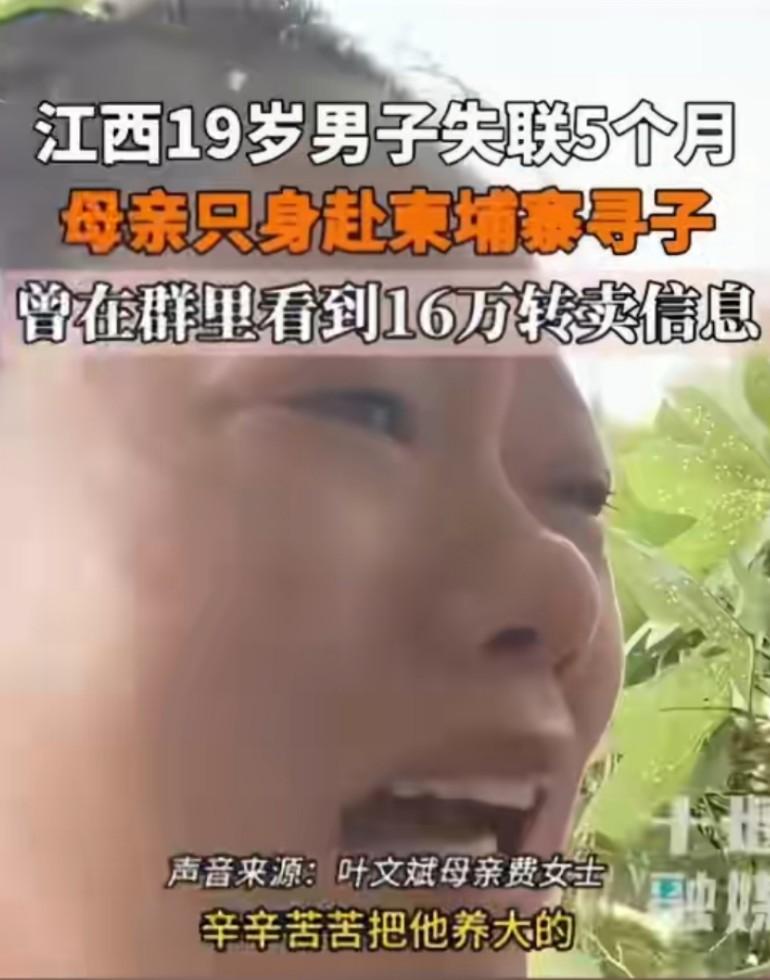 江西19岁男子失联5个月,叶文斌妈妈独自去柬埔寨寻子,曾在群里看到16万转卖信息 联合国真的不知情嘛?为啥没行动,真搞笑了,相关部门让你去旅游呢。为啥这母亲自己去了,很明显,别人指不上。女子本弱,为母则刚。这是一个被逼到绝境的母亲唯一能想到的办法。但凡有一点办法,她也不会以身犯险。 想办法在柬埔寨弄丢一名大漂亮人就行,一位就可以,人家海军立马去了开干,所有园区都会蒸发